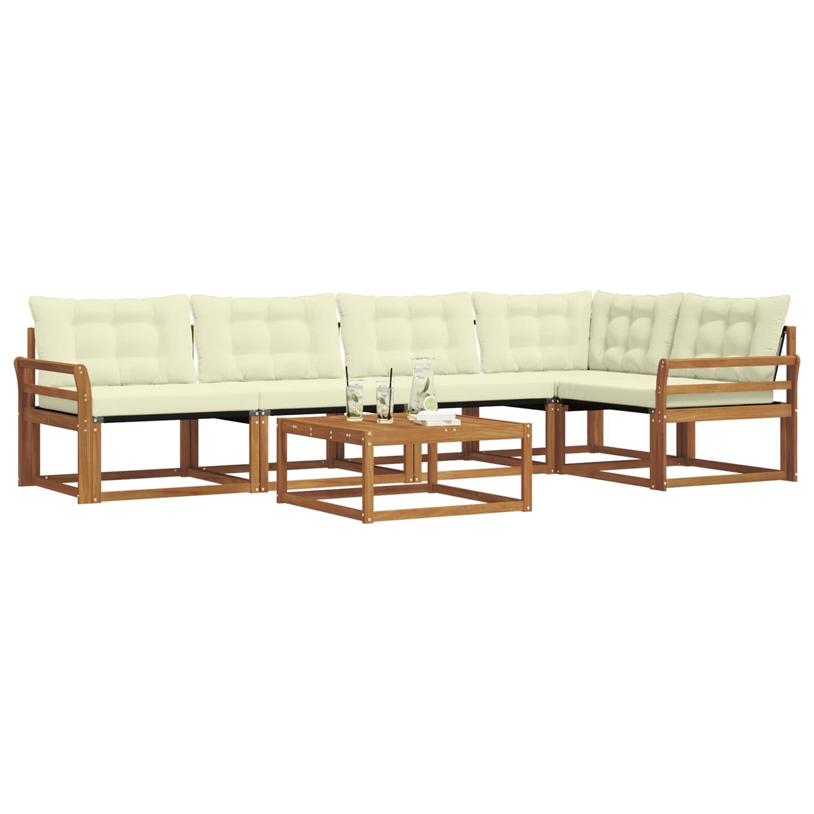 Setul de mobilier de exterior îmbină stilul cu funcționalitatea, creând un punct de atracție pentru grădină sau terasă. Designul modern, cu linii clare și detalii fine, aduce eleganță și completează perfect momentele de relaxare afară. Fabricat din lemn masiv de acacia, acest set e durabil și arată bine mult timp, fiind alegerea ideală pentru cei care caută un mobilier practic și elegant.
