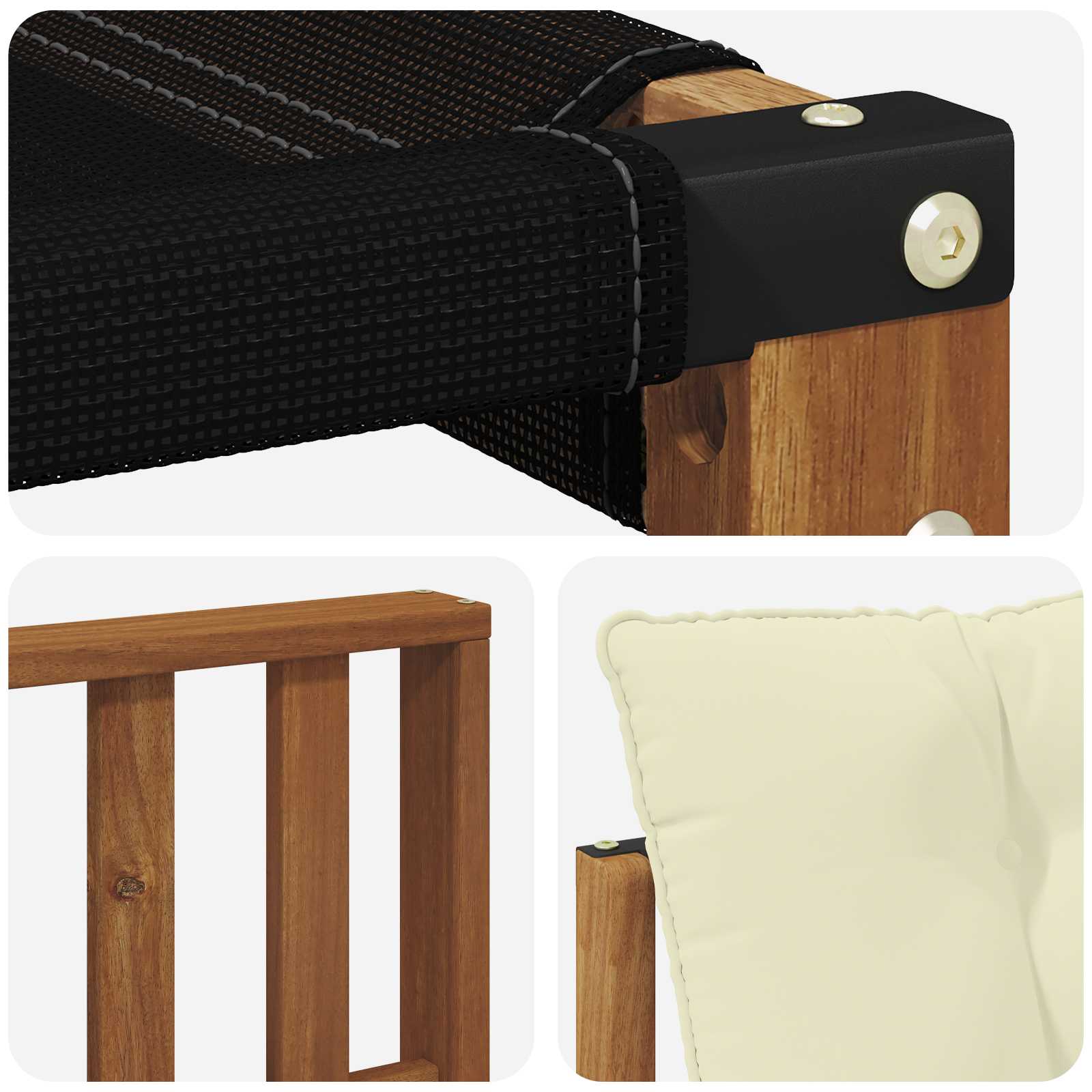 - Lemn masiv de acacia: O construcție puternică din lemn de acacia care arată mereu bine și rezistă la vreme, ideal pentru orice condiții exterioare. Materialul asigură o durabilitate lungă, rămânând frumos și fără probleme, fie cu ploaie, fie cu soare.