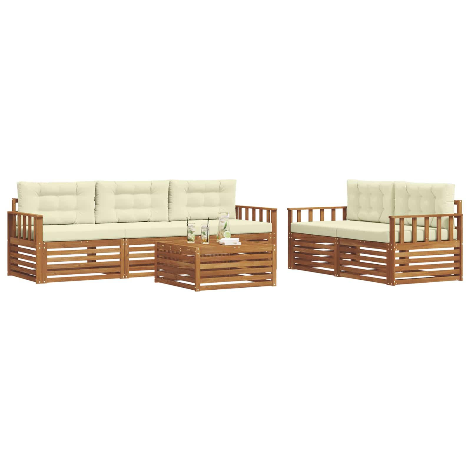 Setul ăsta de mobilier de exterior îmbină stilul cu funcționalitatea, devenind centrul de atracție pentru terasa ta sau pentru grădină. Designul modern, cu linii clare și detalii simple, aduce eleganță și face timpul petrecut afară mult mai plăcut. E fabricat din lemn masiv de acacia, așa că e atât rezistent, cât și frumos, potrivit pentru oricine vrea un mobilier de exterior atât util, cât și cool.