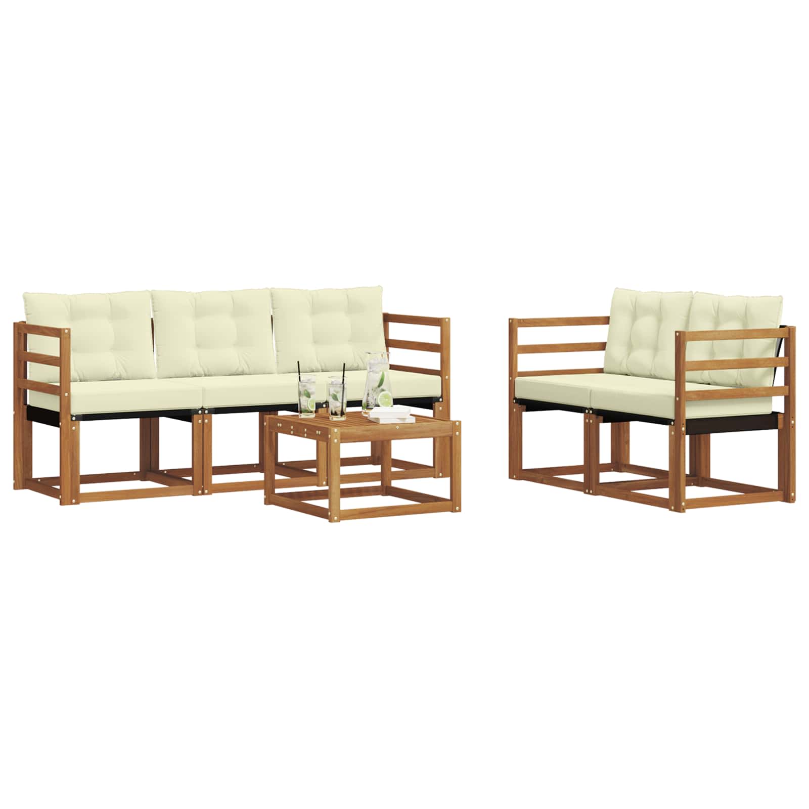 Setul de mobilier de exterior combină stilul cu funcționalitatea, fiind o piesă excelentă pentru orice grădină sau terasă. Cu un design modern, simplu și elegant, aduce un vibe relaxant pentru întâlniri sociale afară. Făcut din lemn masiv de acacia, asigură durabilitate și arată bine pe termen lung, ideal pentru cei care caută atât practică, cât și un design frumos în mobilierul de exterior.