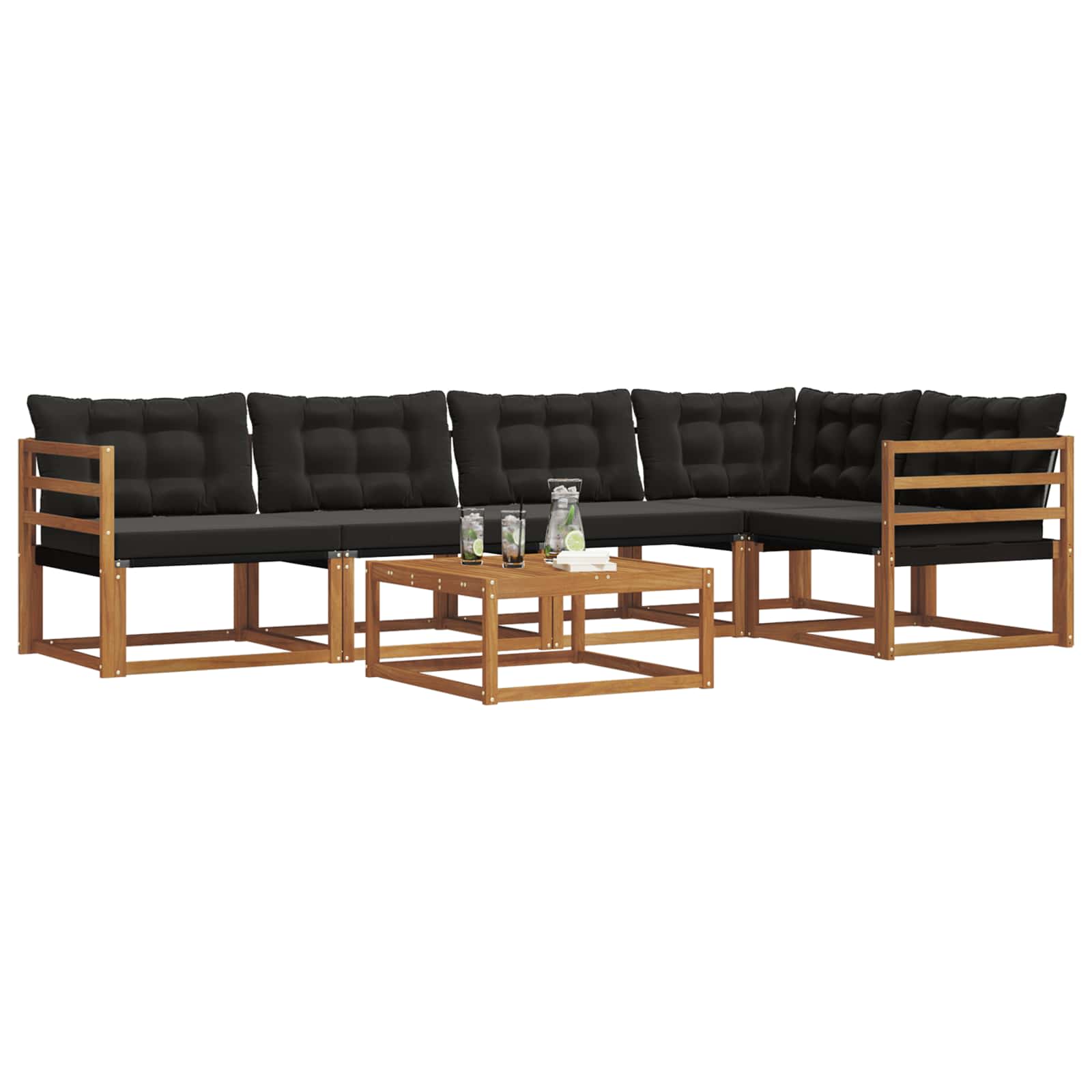 Setul de mobilier de exterior îmbină stilul cu funcționalitatea, creând un punct de atracție pentru grădină sau terasă. Designul modern, cu linii clare și detalii fine, aduce eleganță și completează perfect momentele de relaxare afară. Fabricat din lemn masiv de acacia, acest set e durabil și arată bine mult timp, fiind alegerea ideală pentru cei care caută un mobilier practic și elegant.