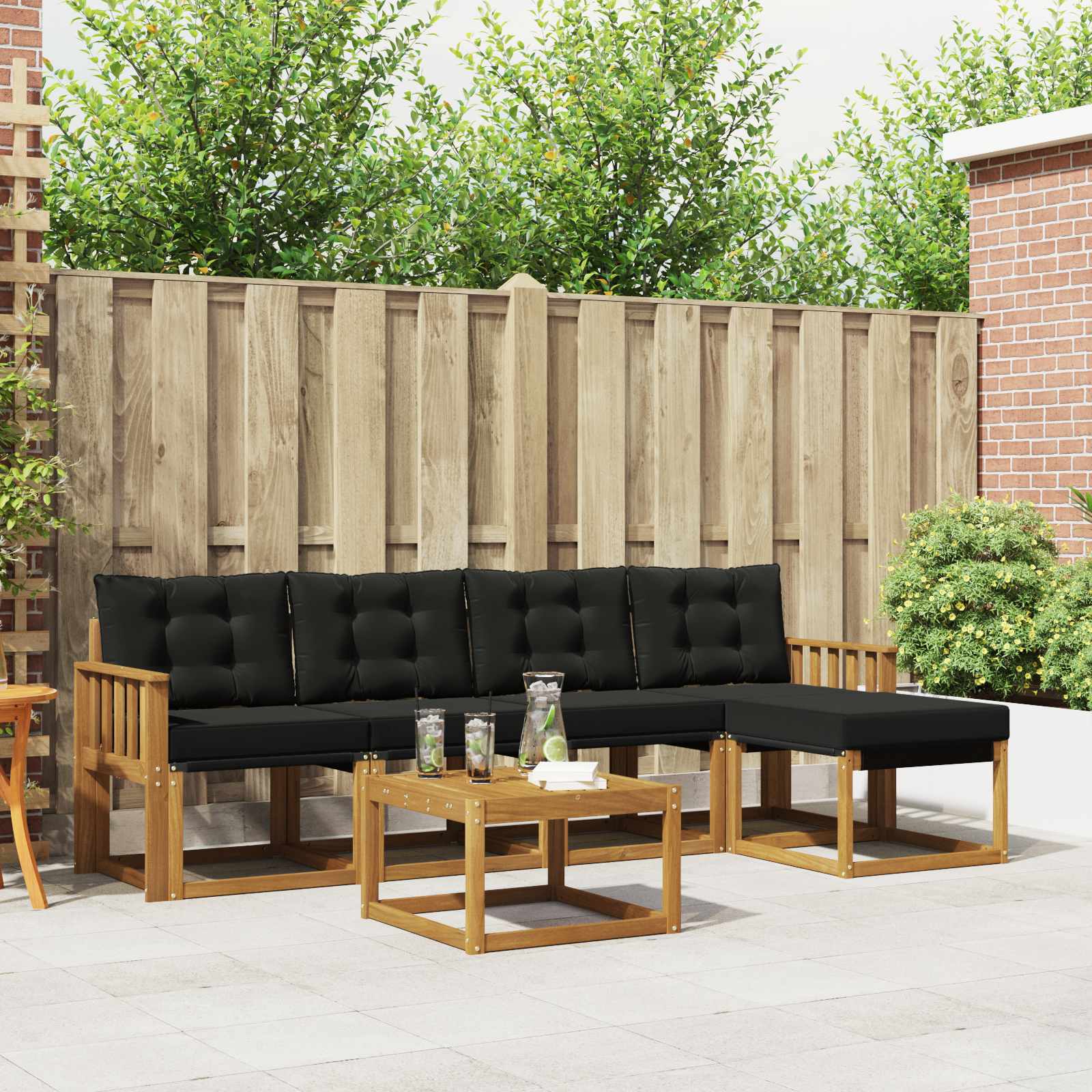 Setul de mobilier de exterior îmbină stilul cu funcționalitatea, fiind un adevărat magnet în orice grădină sau pe terasă. Designul modern, cu linii curate și detalii fine, oferă eleganță și sprijină relaxarea și întâlnirile în aer liber. Fabricat integral din lemn masiv de acacia, acest set promite durabilitate și un aspect atrăgător pe termen lung, fiind ideal pentru cei care caută atât practicitate, cât și rafinament în mobilierul de exterior.