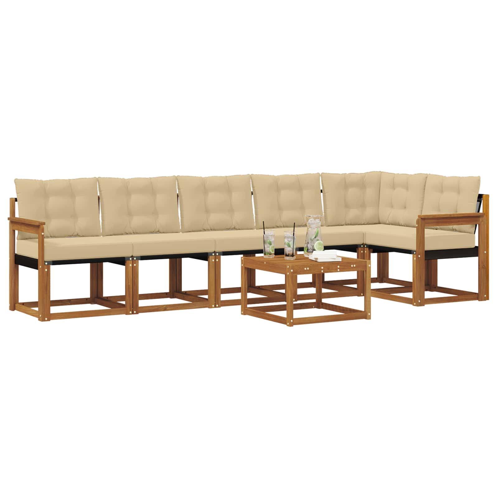 Set de canapele de exterior cu pernă 7 pcs Natural și Bej GartenMobel Dekor