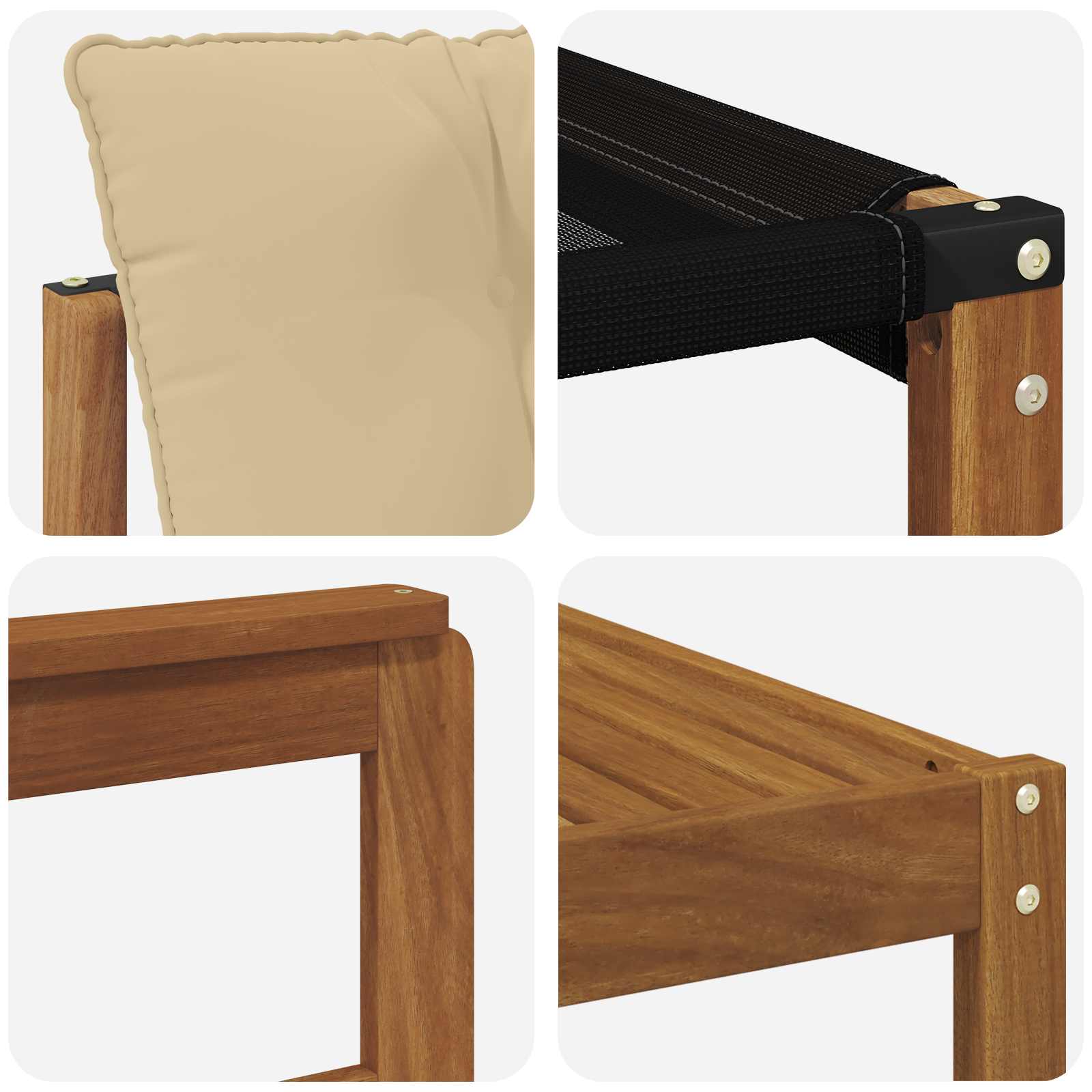 - Material: Lemn solid de acacia și textilene
