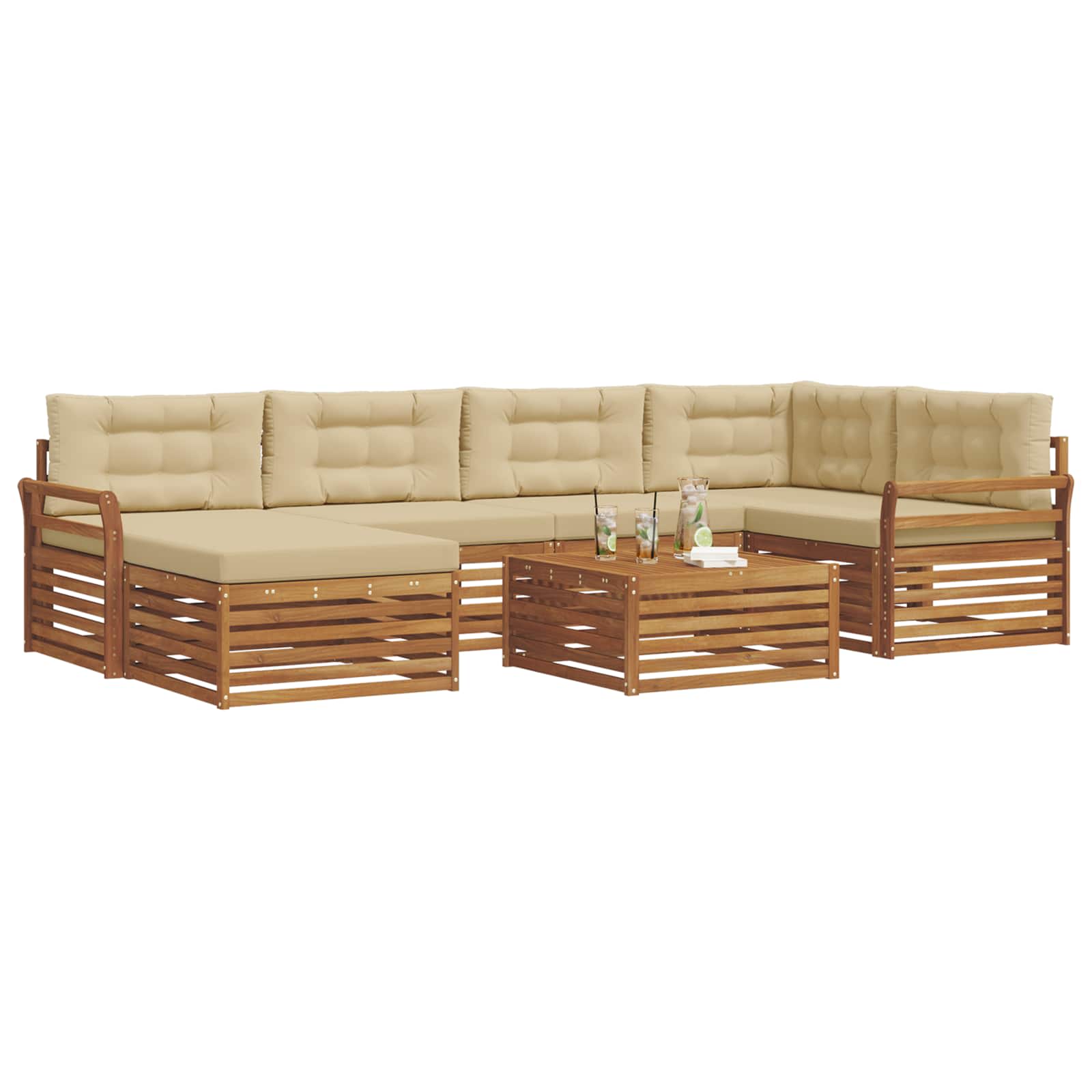 Set de canapele de exterior cu pernă 7 pcs Natural și Bej GartenMobel Dekor