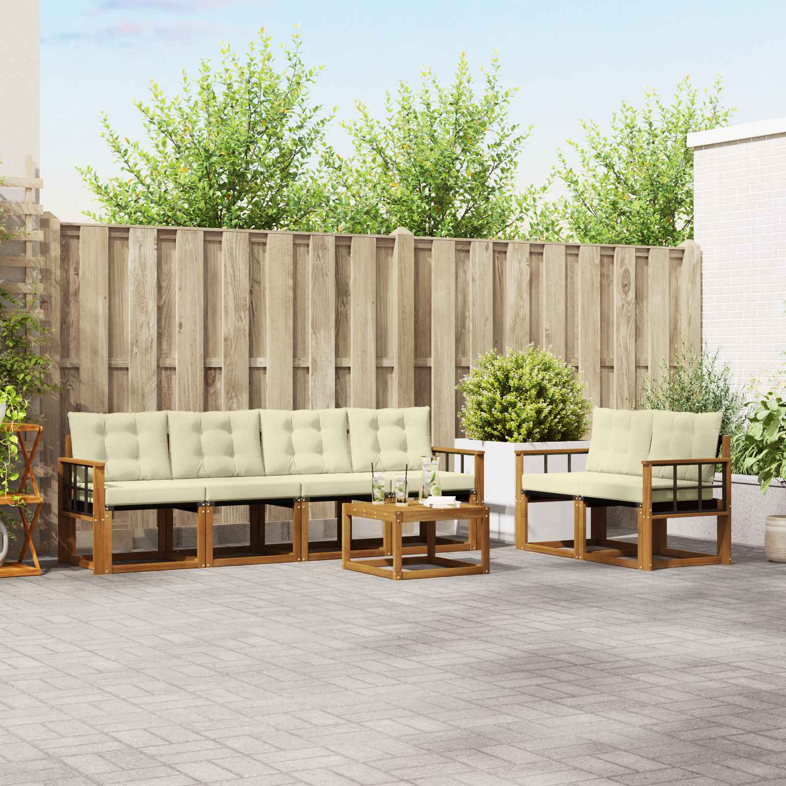 Set de canapele de exterior cu pernă 7 pcs Natural și Crem GartenMobel Dekor