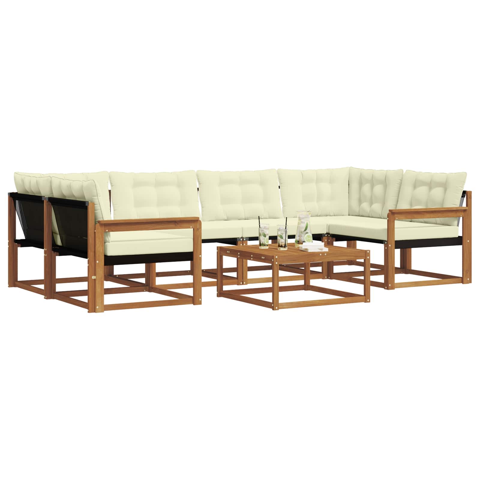 Setul de mobilier de exterior aduce împreună stilul și funcționalitatea, devenind un punct de atracție în orice grădină sau terasă. Designul său modern, cu linii simple și fără prea multe detalii, pune accentul pe eleganță și confort în aer liber, perfect pentru întâlniri cu prietenii. Fabricat din lemn masiv de acacia, oferă durabilitate și un look plăcut, ideal pentru cei care vor atât practicitate, cât și un design rafinat.