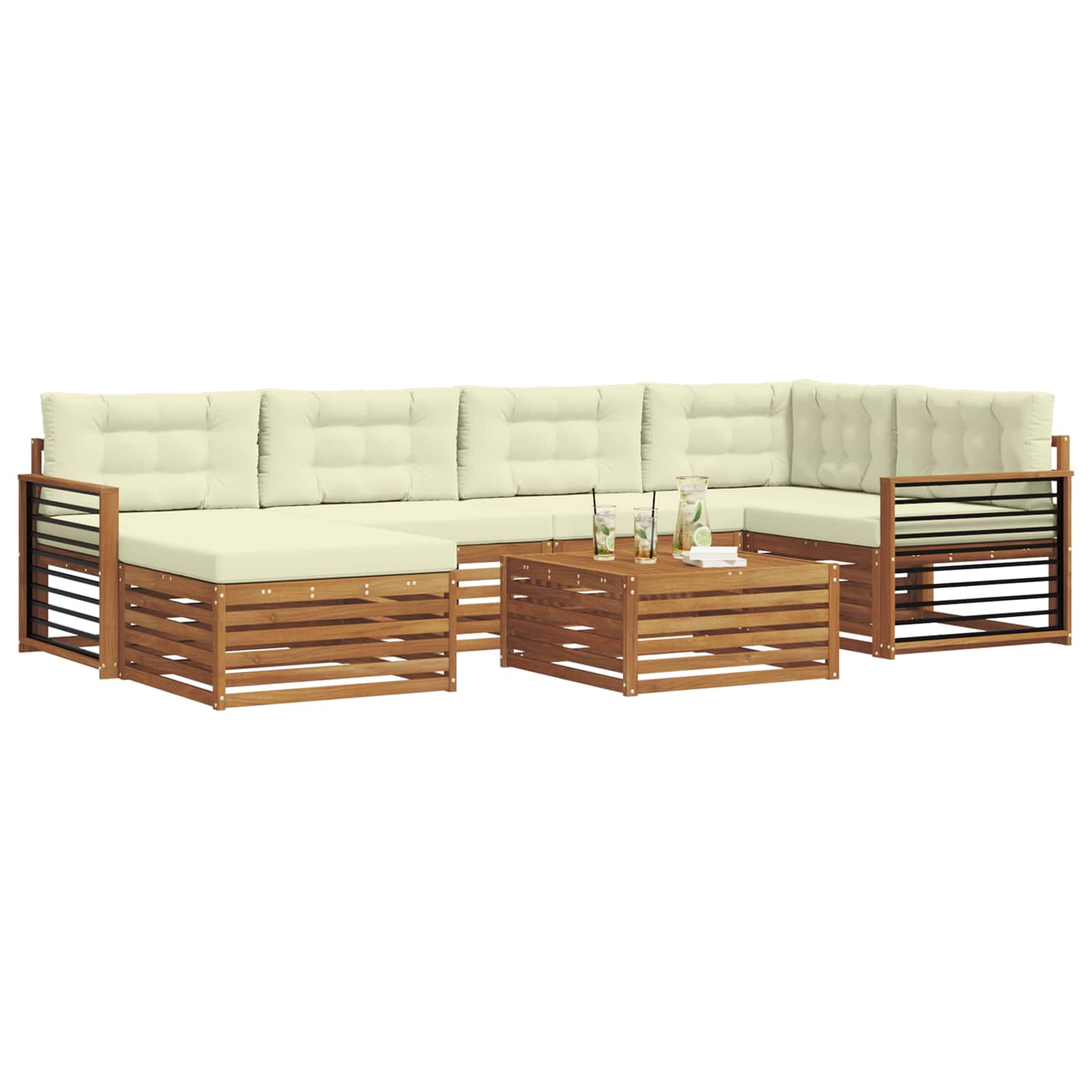 Setul de mobilier pentru exterior îmbină stilul cu utilitatea, făcându-se remarcat în orice grădină sau terasă. Designul modern, cu linii curate și detalii simple, aduce eleganță și ajută la relaxare și întâlniri sociale în aer liber. E complet din lemn masiv de acacia, asigurându-se că e durabil și arată bine pentru mult timp, ideal pentru cei care doresc un mobilier practic și elegant at the same time.
