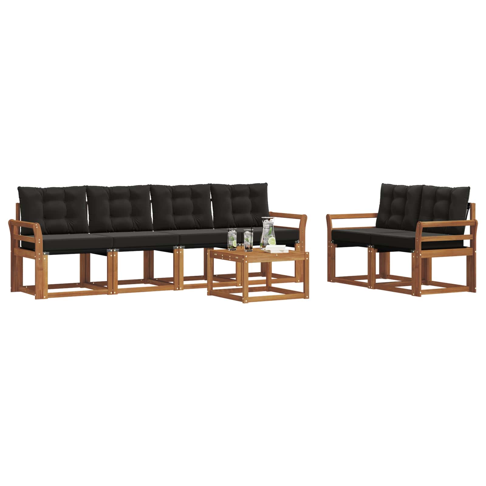 Setul ăsta de mobilier pentru exterior combină stilul cu funcționalitatea și devine punctul de atracție pentru orice grădină sau terasă. Designul modern, cu linii clare și detalii simple, adaugă un strop de eleganță și încurajează relaxarea în aer liber, dar și întâlnirile cu prietenii. Făcut complet din lemn masiv de acacia, setul e super durable și arată bine pe termen lung, fiind perfecta alegere pentru cei care caută practicitate și un design chic în mobilierul de exterior.