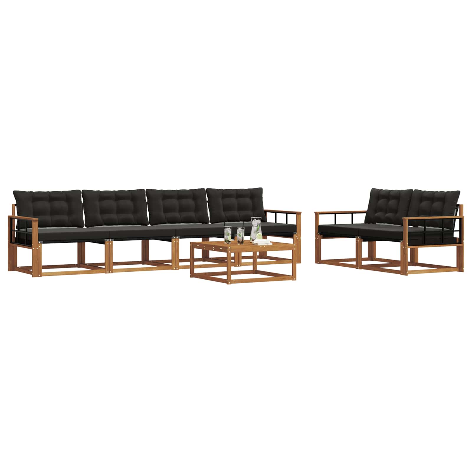 Acest set de mobilier de exterior îmbină stilul cu funcționalitatea, creând un punct de atracție pentru orice grădină sau terasă. Designul modern, cu linii simple și detalii discrete, adaugă eleganță și susține relaxarea și întâlnirile sociale afară. Fabricat din lemn masiv de acacia, setul promite durabilitate și un aspect plăcut, fiind alegerea perfectă pentru cei care caută atât practicitate, cât și un design rafinat în mobilierul de exterior.