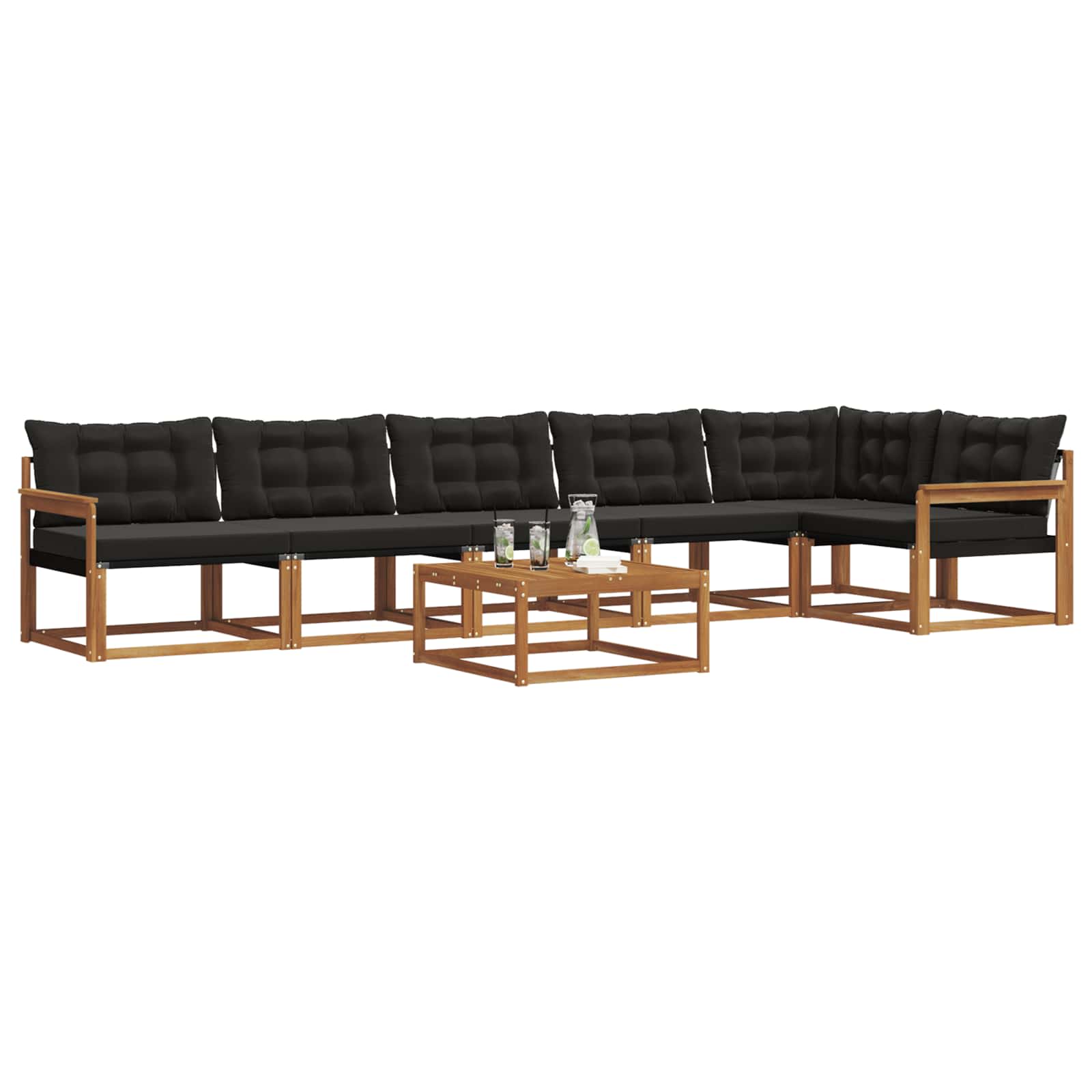 Setul de mobilier pentru exterior îmbină stilul cu funcționalitatea, devenind un punct de atracție pentru orice grădină sau terasă. Designul său modern, cu linii clare și detalii simple, adaugă eleganță, încurajând relaxarea în aer liber și întâlnirile cu prietenii. Făcut din lemn masiv de acacia, setul e durabil și are un aspect care rezistă în timp, fiind alegerea ideală pentru cei care vor mobilă de exterior care să fie practică, dar și rafinată.