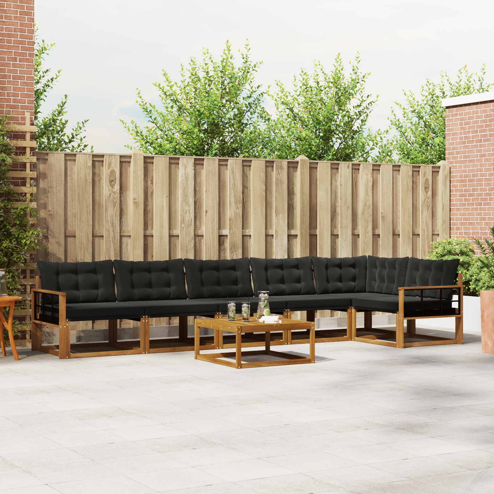Setul de mobilier pentru exterior îmbină stilul cu funcționalitatea, devenind un punct de atracție pentru orice grădină sau terasă. Designul său modern, cu linii clare și detalii simple, adaugă eleganță, încurajând relaxarea în aer liber și întâlnirile cu prietenii. Făcut din lemn masiv de acacia, setul e durabil și are un aspect care rezistă în timp, fiind alegerea ideală pentru cei care vor mobilă de exterior care să fie practică, dar și rafinată.