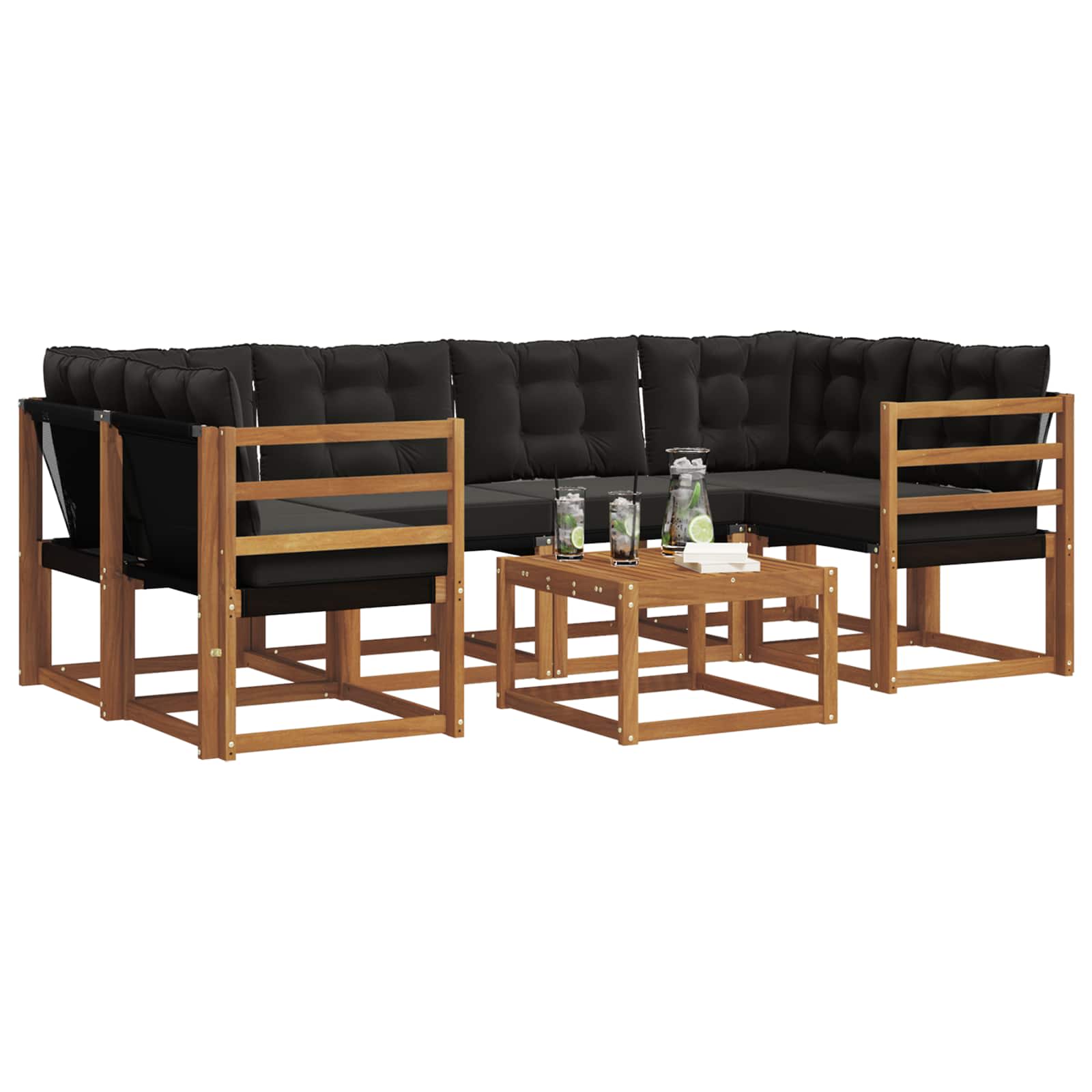 - Amestec de materiale elegante: Setul ăsta de canapea e făcut din lemn masiv de acacia și Textilene, oferindu-ți o textură naturală frumoasă și o suprafață de șezut rezistentă. Materialele combinate nu doar că arată bine, dar sunt și rezistente la vreme, promițând să fie un companion de nădejde pe tot parcursul anului.