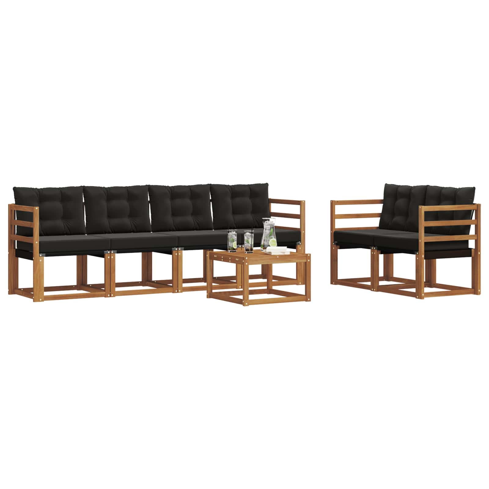 Set de canapele de exterior cu pernă 7 pcs Natural și Negru GartenMobel Dekor