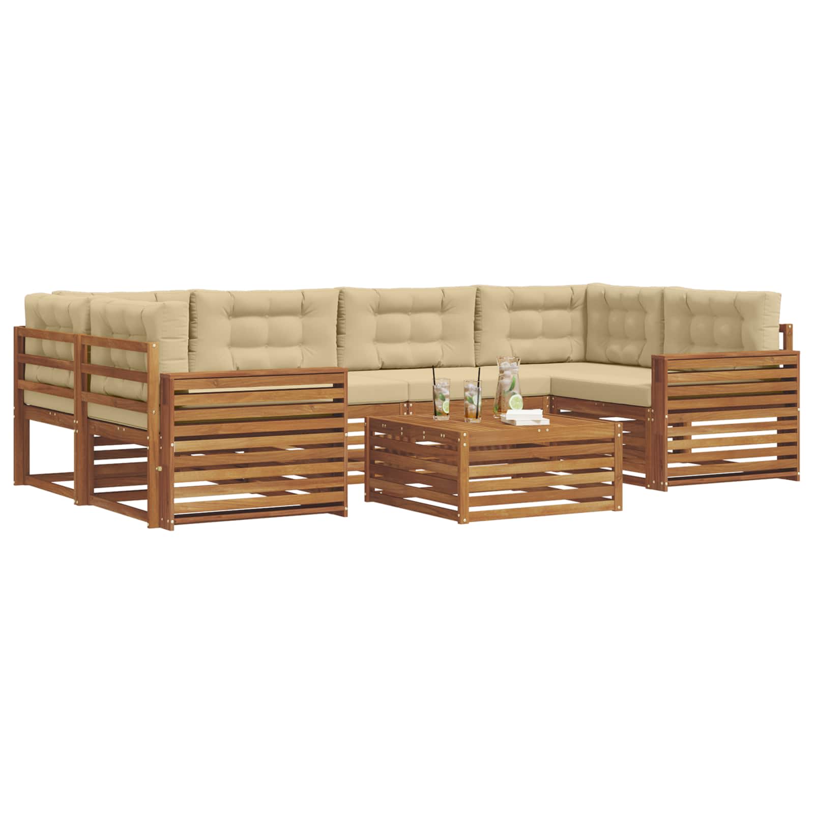 Set de canapele de exterior cu pernă 8 pcs Natural și Bej GartenMobel Dekor