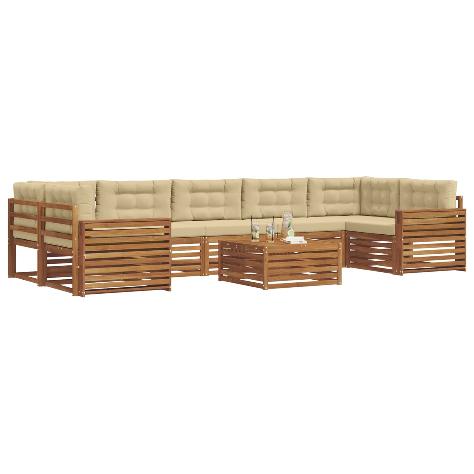 Set de canapele de exterior cu pernă 8 pcs Natural și Bej GartenMobel Dekor