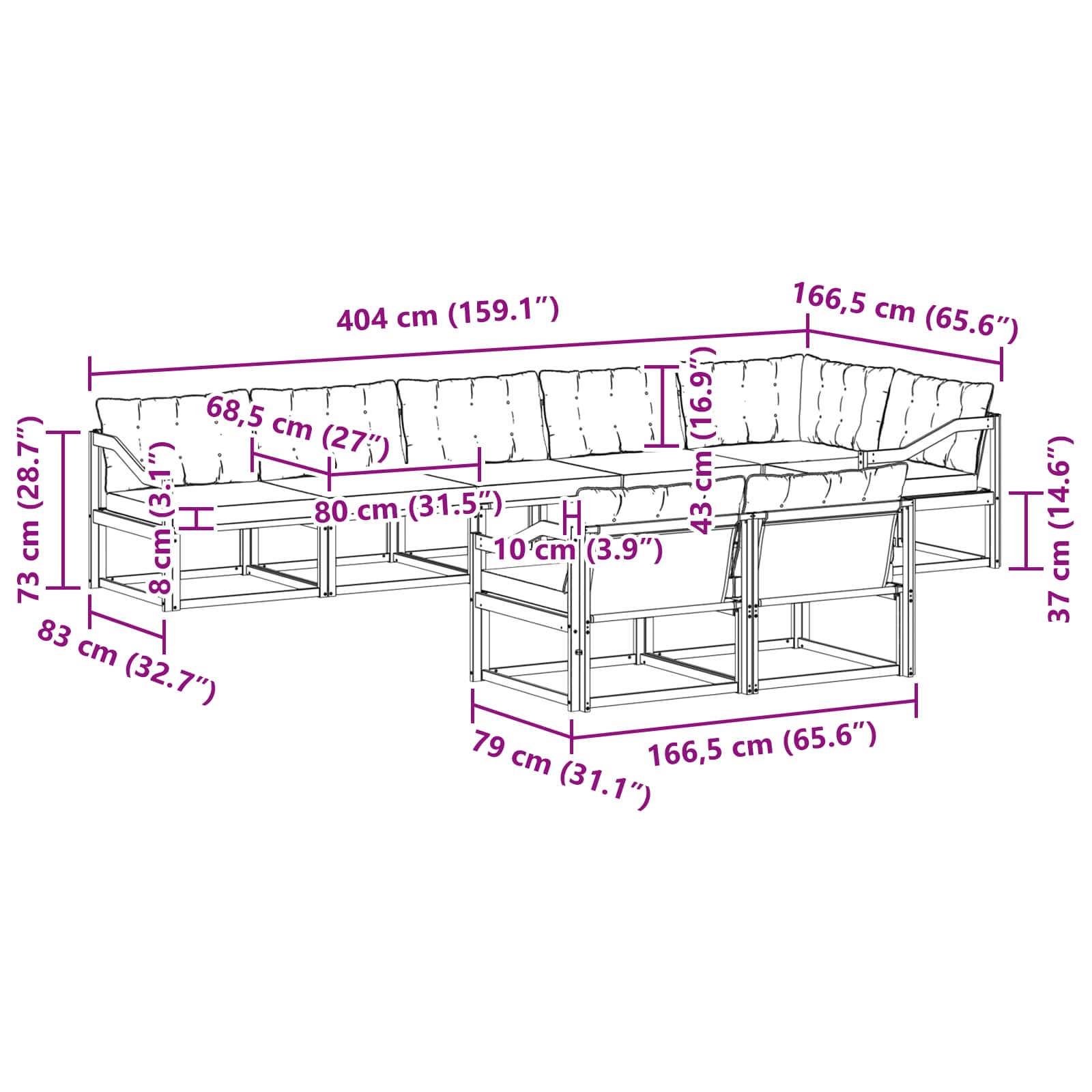 - 9 x pernă de spate: 80 x 43 x 10 cm (LxWxH)