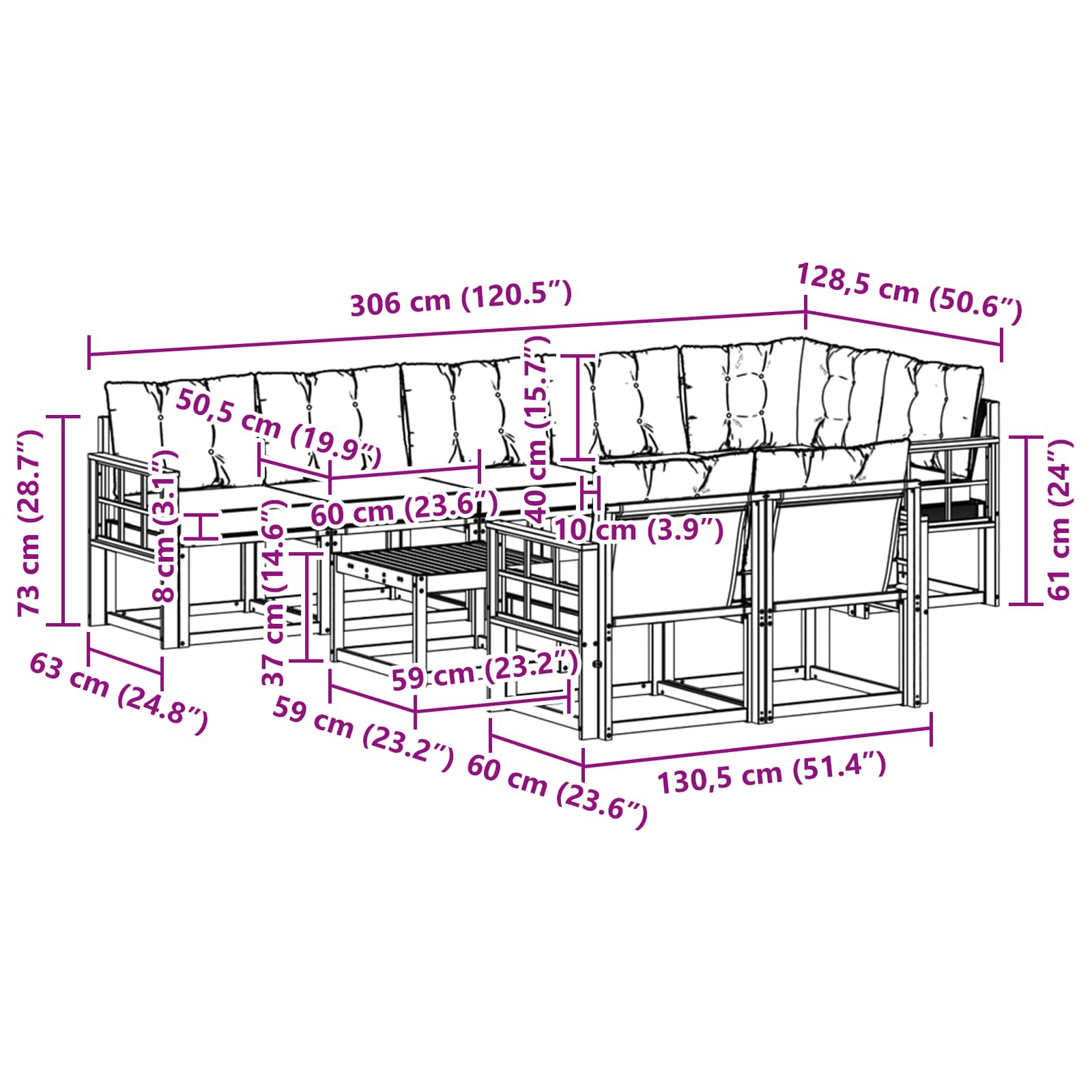 Set de canapele de exterior cu pernă 9 pcs Natural și Bej GartenMobel Dekor