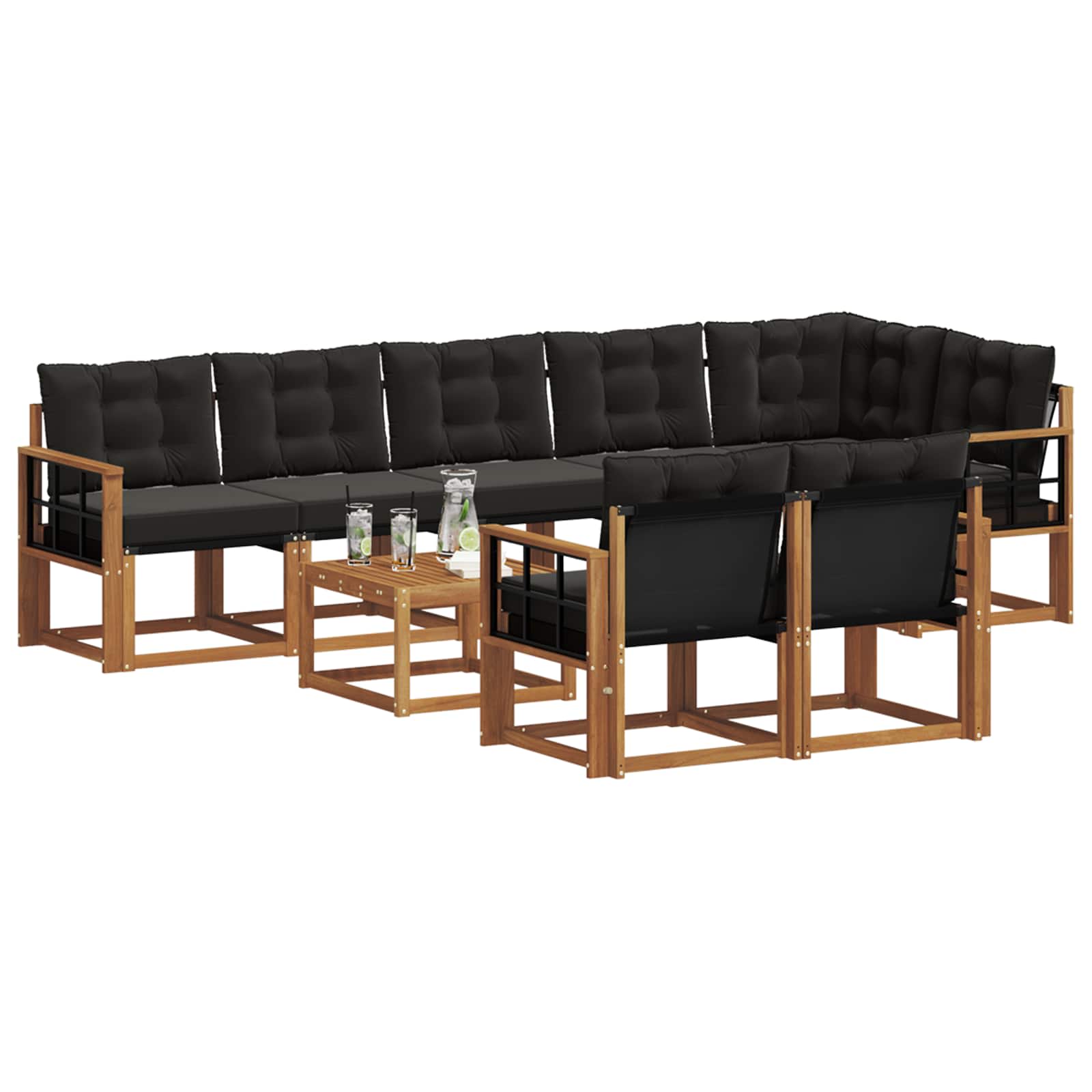 Set de canapele de exterior cu pernă 9 pcs Natural și Negru GartenMobel Dekor