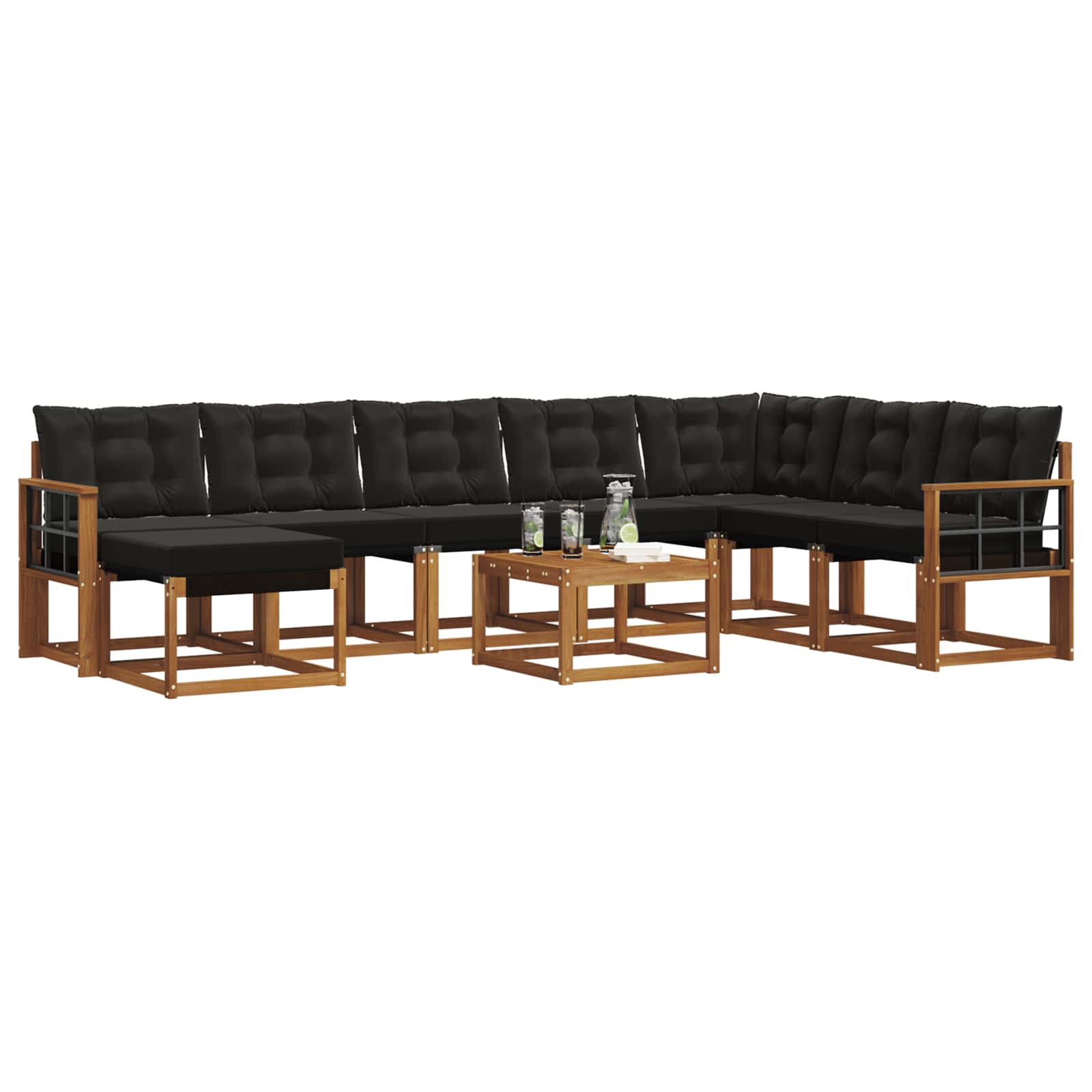 Set de canapele de exterior cu pernă 9 pcs Natural și Negru GartenMobel Dekor