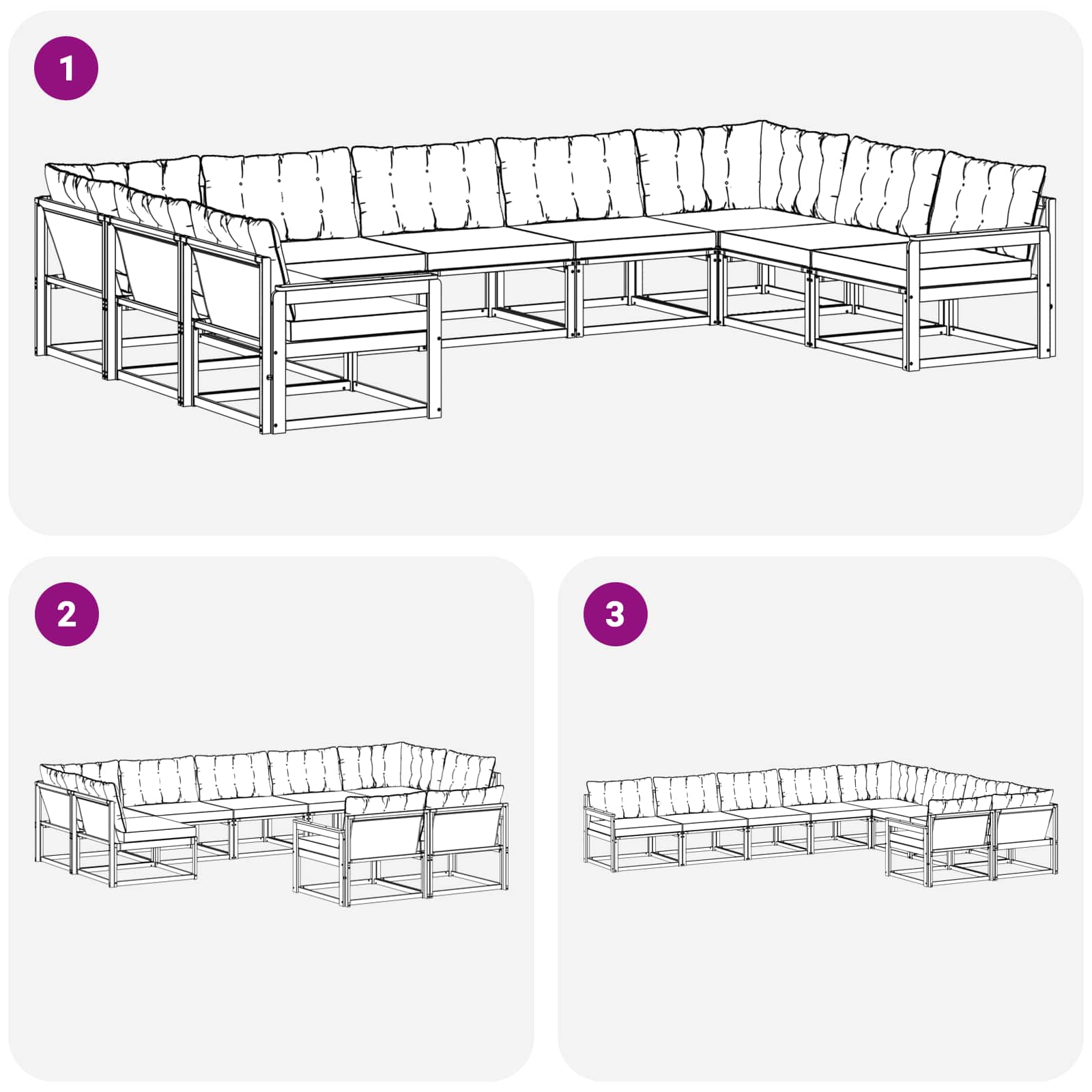- 11 x Pernă pentru spate: 80 x 43 x 10 cm (LxWxH)