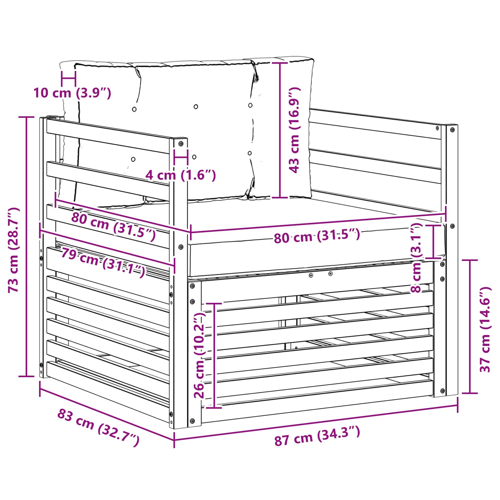 - 1 x canapea de mijloc: 79 x 83 x 73 cm (LxWxH)