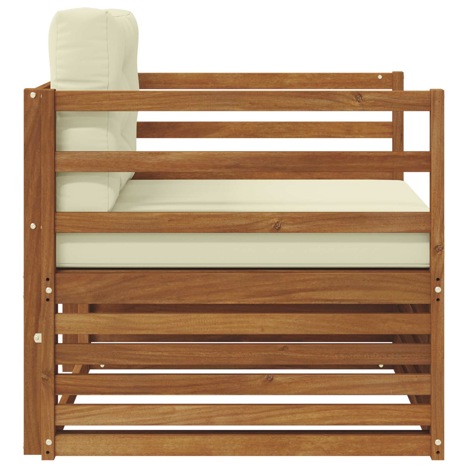 - Lemn de acacia autentic: Făcută din lemn solid de acacia, canapeaua e super durabilă și arată bine. Textura naturală și nuanțele calde adaugă un strop de rafinament, devenind un must-have pentru exterior. Îngrijirea e simplă, doar ștergi din când în când pentru a păstra aspectul proaspăt.