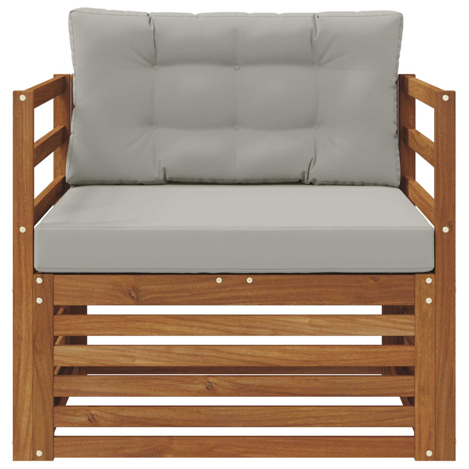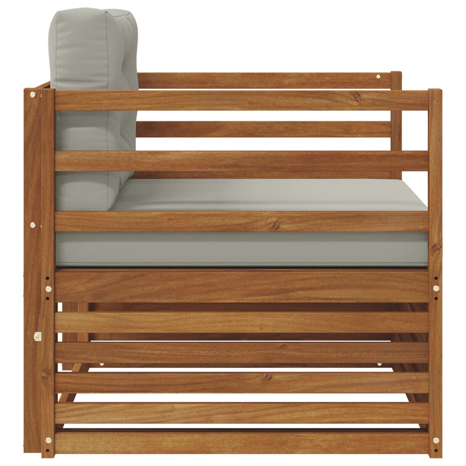 - Lemn de acacia autentic: Făcută din lemn solid de acacia, canapeaua e super durabilă și arată bine. Textura naturală și nuanțele calde adaugă un strop de rafinament, devenind un must-have pentru exterior. Îngrijirea e simplă, doar ștergi din când în când pentru a păstra aspectul proaspăt.