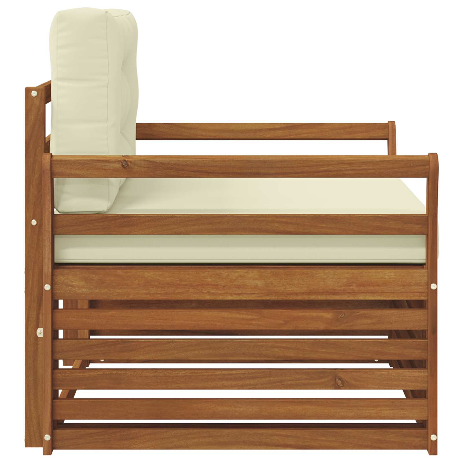 - Lemn de acacia autentic: Făcută din lemn solid de acacia, canapeaua e super durabilă și arată bine. Textura naturală și nuanțele calde adaugă un strop de rafinament, devenind un must-have pentru exterior. Îngrijirea e simplă, doar ștergi din când în când pentru a păstra aspectul proaspăt.