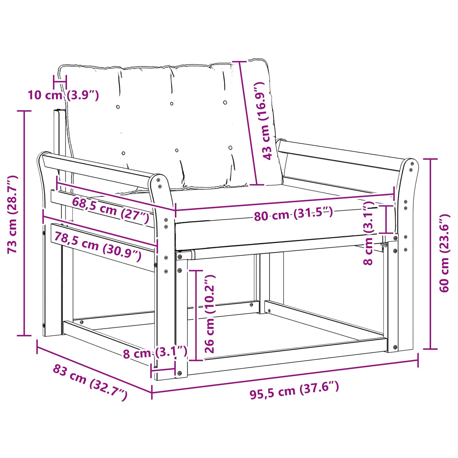 - 1 x Perne de șezut: 80 x 68,5 x 8 cm (LxWxH)