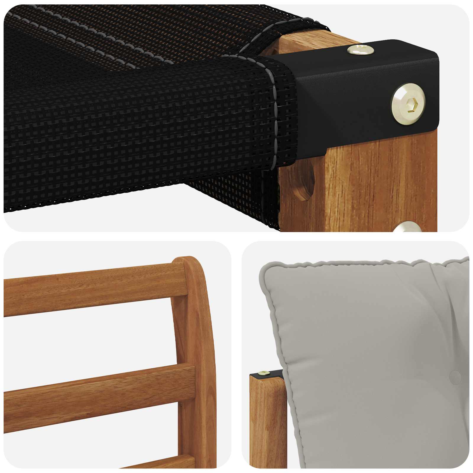 Setul ăsta de mobilier de exterior îmbină stilul cu funcționalitatea, făcându-l o piesă centrală super faină pentru grădini sau terase. Designul său modern are linii curate și detalii simple, aducând eleganță pe lângă relaxare și socializare în aer liber. E 100% din lemn masiv de acacia, deci e durabil și arată bine în timp, fiind alegerea perfectă pentru cei care caută atât utilitate cât și un design rafinat.