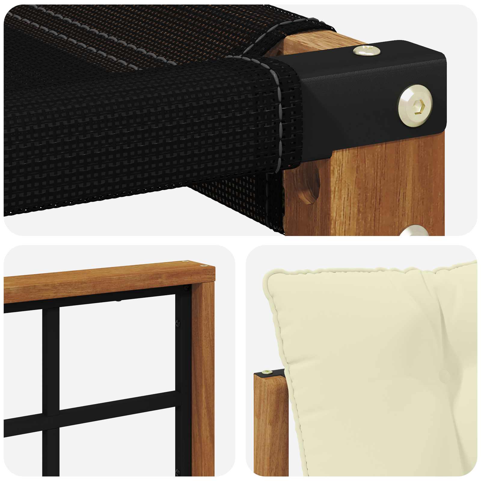 Setul ăsta de mobilier de exterior îmbină stilul cu funcționalitatea, făcându-l o piesă centrală super faină pentru grădini sau terase. Designul său modern are linii curate și detalii simple, aducând eleganță pe lângă relaxare și socializare în aer liber. E 100% din lemn masiv de acacia, deci e durabil și arată bine în timp, fiind alegerea perfectă pentru cei care caută atât utilitate cât și un design rafinat.