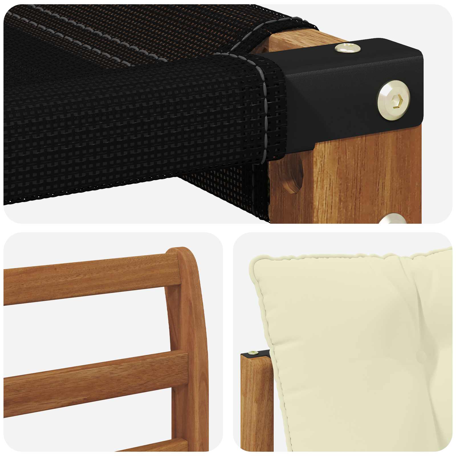 Setul de mobilier de exterior combină stilul cu utilitatea, făcându-l un punct de atracție pentru orice grădină sau terasă. Are un design modern cu linii simple și detalii minimale care adaugă eleganță, perfect pentru relaxare și întâlniri în aer liber. Totul e din lemn de acacia masiv, deci e durabil și arată bine mult timp, fiind alegerea pefectă pentru cei care vor practicitate și un design frumos.