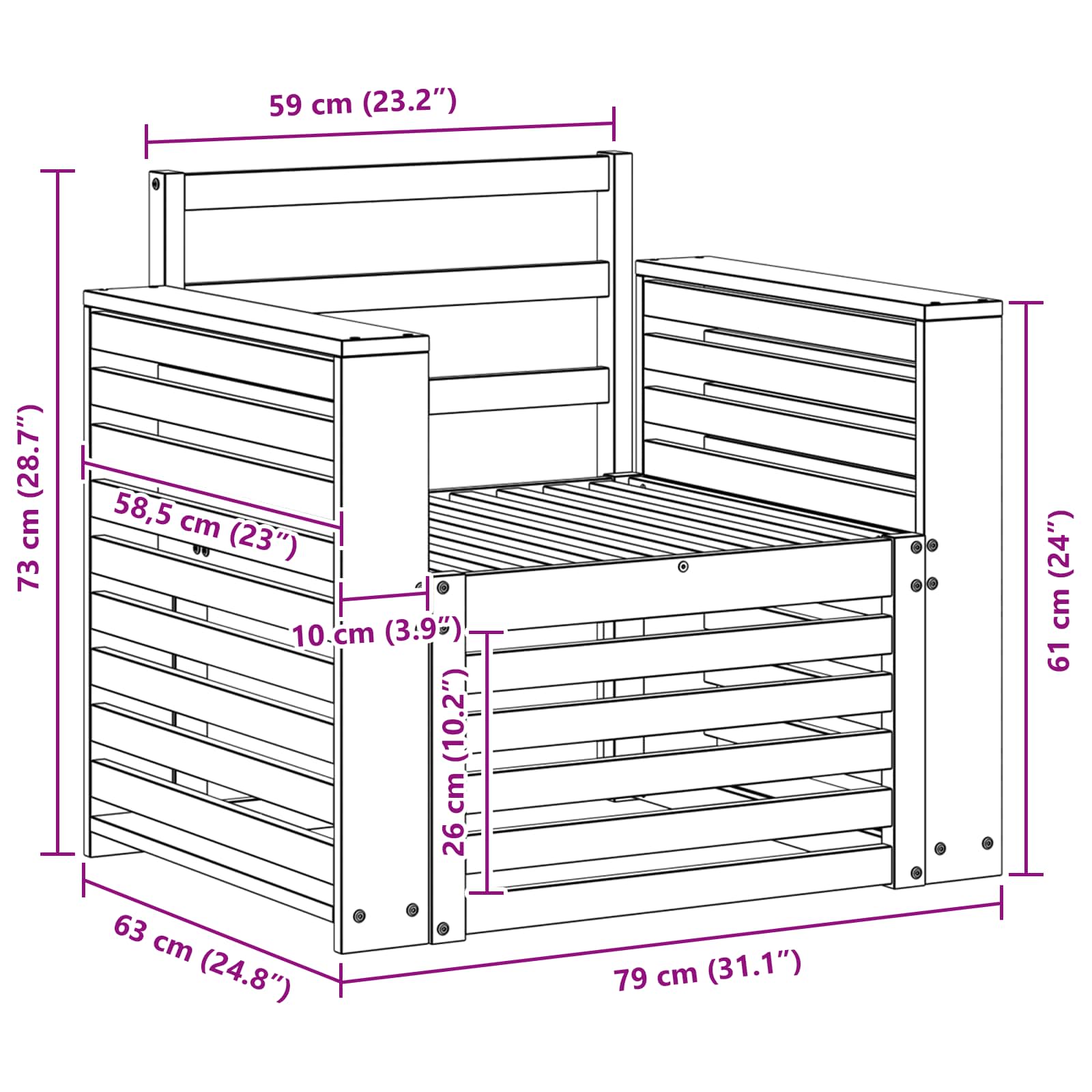 - 2 x brațe: 58,5 x 10 x 61 cm (LxWxH)