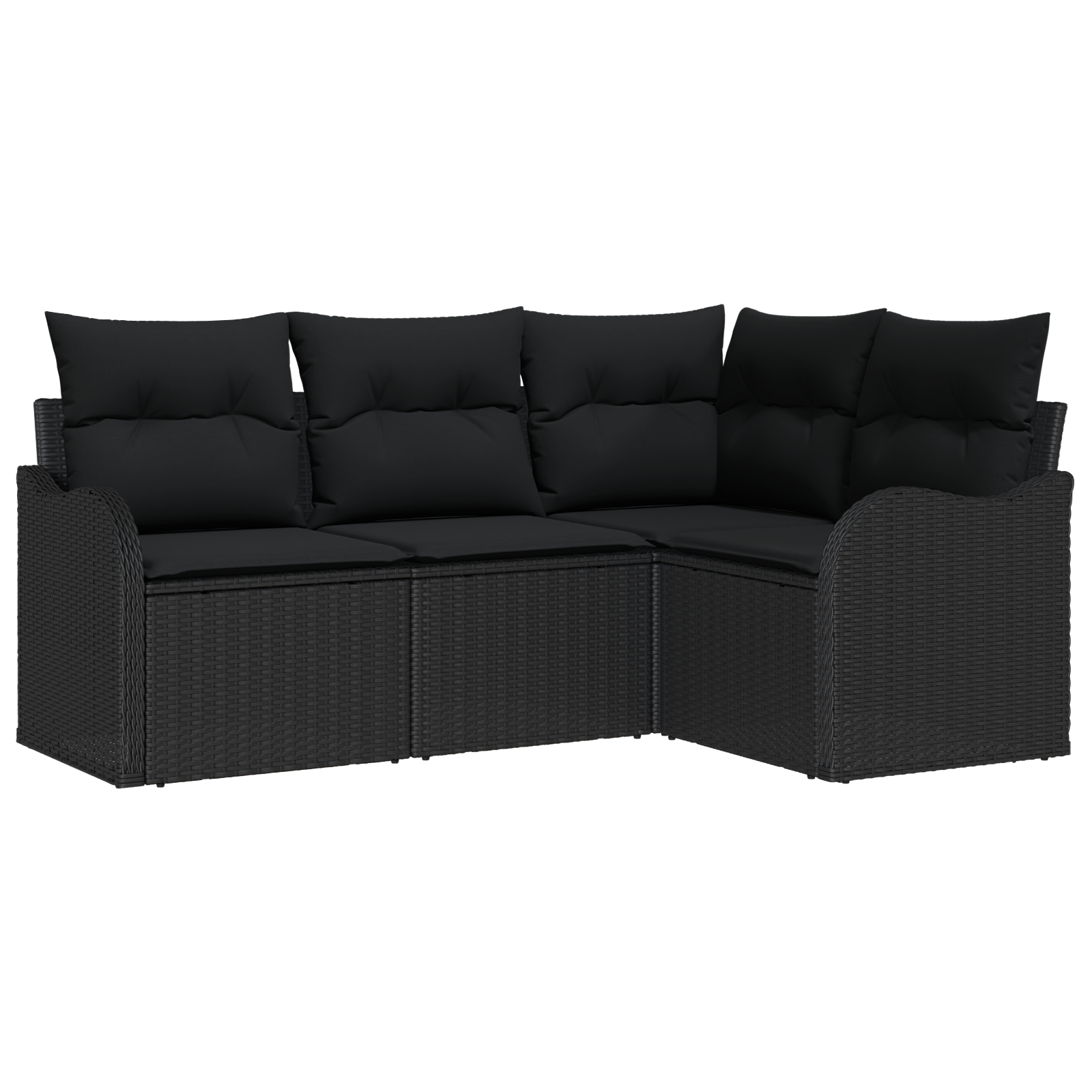 Set de canapele de grădină 4 piese cu perne din ratan poliester negru, Canapea de grădină pentru 2 persoane cu perne din ratan poliester negru GartenMobel Dekor