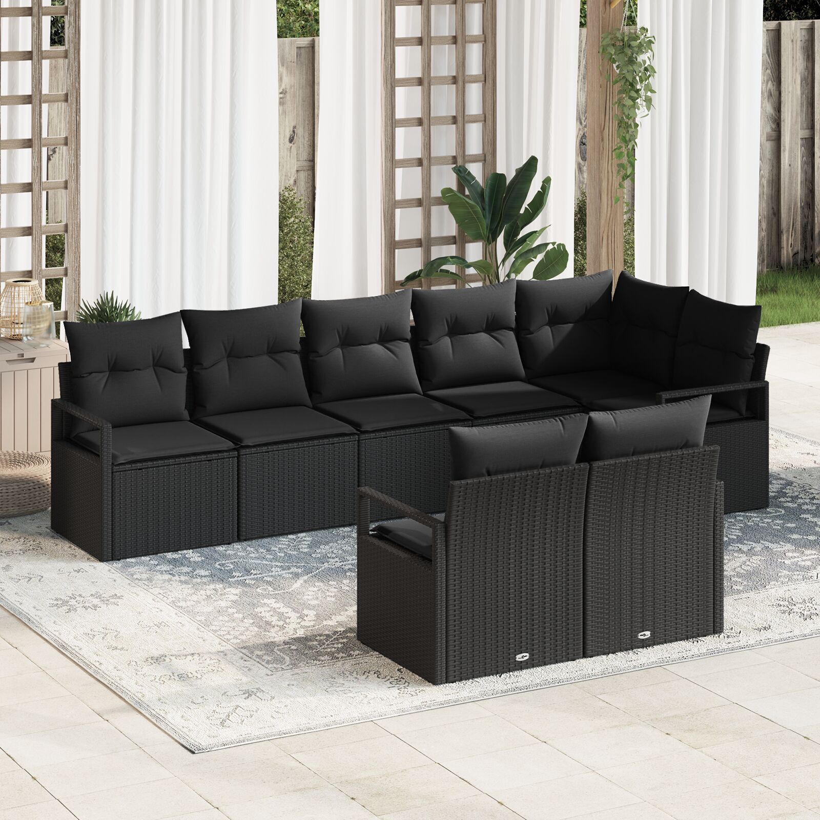 Set de canapele de grădină 8 piese cu perne Ratan negru, Canapea de grădină 2 locuri cu perne Ratan negru GartenMobel Dekor