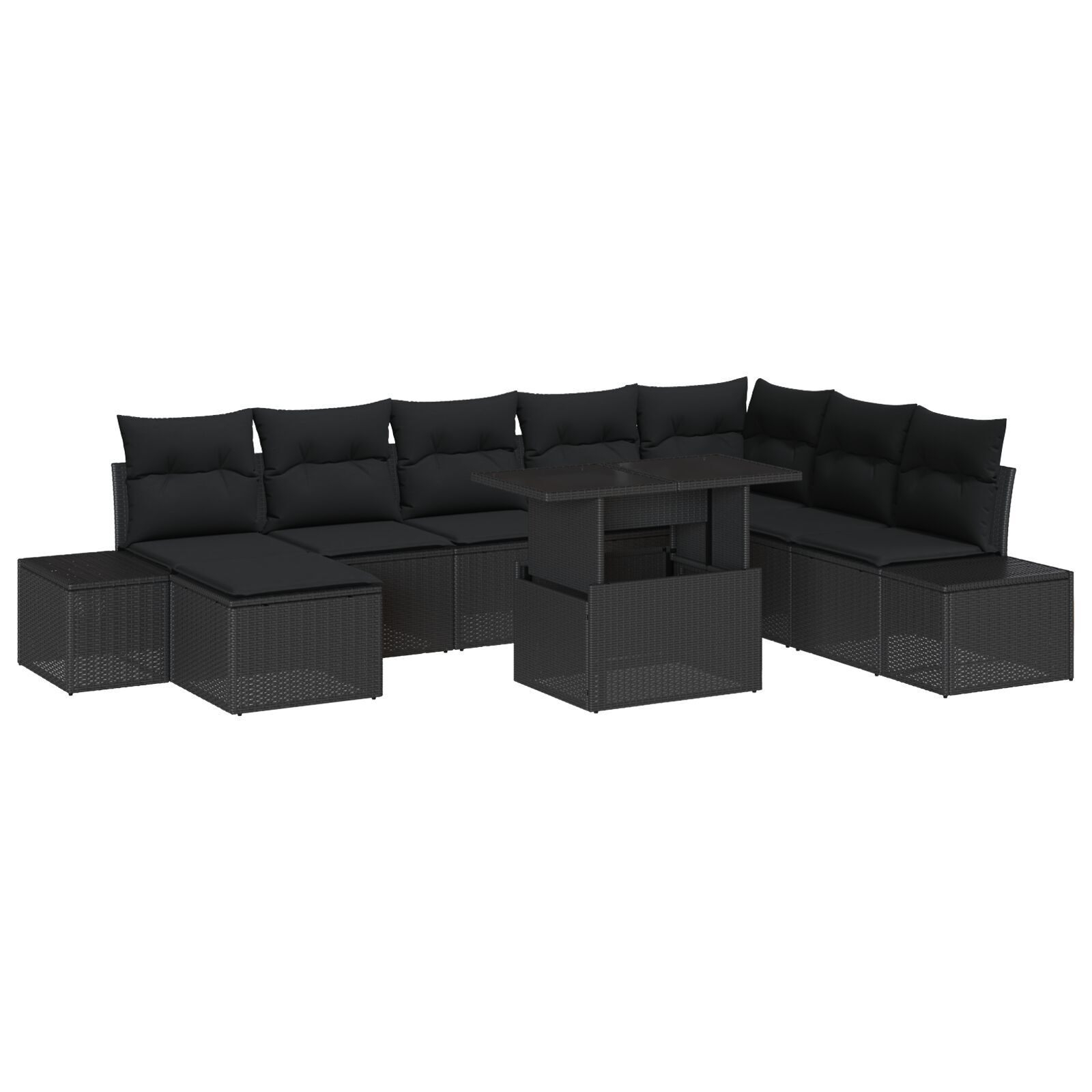 Set de canapele de grădină 9 piese cu perne Negru din ratan polimer GartenMobel Dekor
