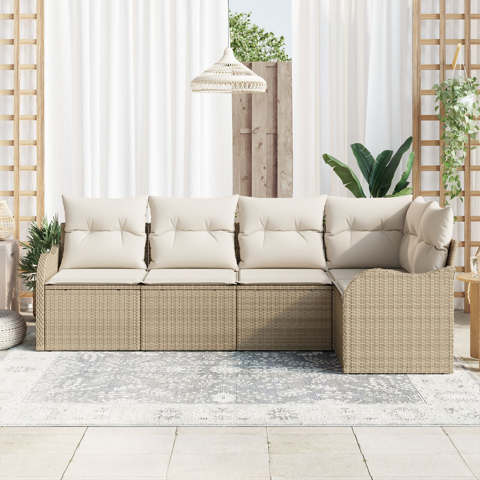 - Finisaj atrăgător: Combinația plăcută de ratan sintetic bej și perne albe oferă un aspect elegant care îmbunătățește stilul spațiilor exterioare, rămânând totodată modern.