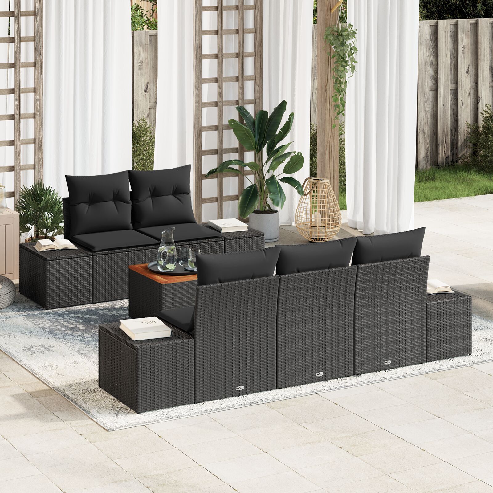 Set de canapele de grădină cu 6 piese cu perne, ratan sintetic negru, acacia GartenMobel Dekor