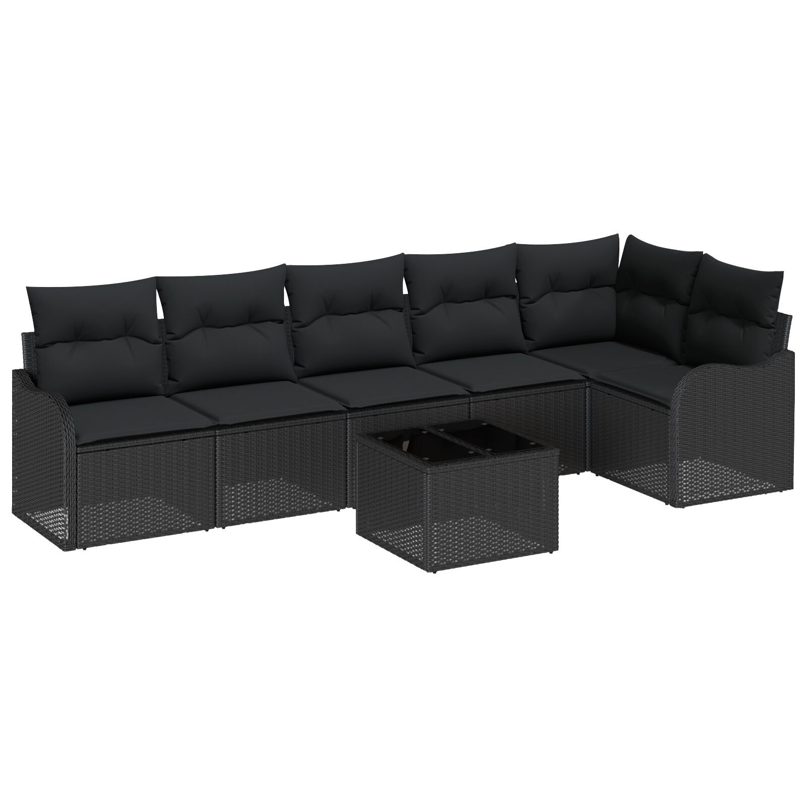 Set de Canapele de Grădină cu 7 Piese și Perne Bej din Poliratan, Canapea de Grădină cu 2 Locuri cu Spațiu de Stocare și Perne din Poliratan Negru GartenMobel Dekor