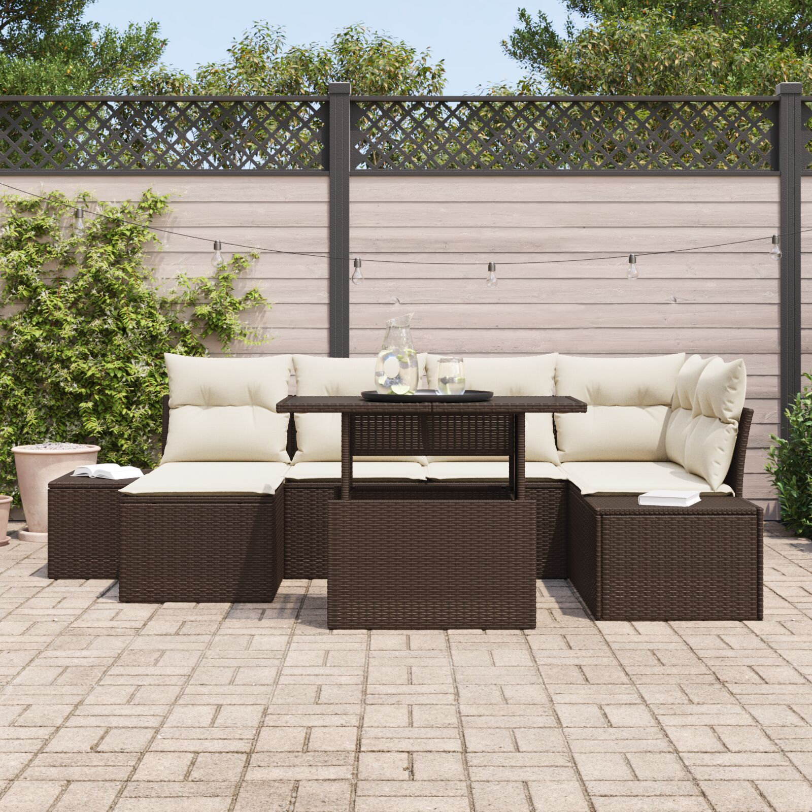 Set de canapele de grădină cu 7 piese și perne maro din poliratan GartenMobel Dekor