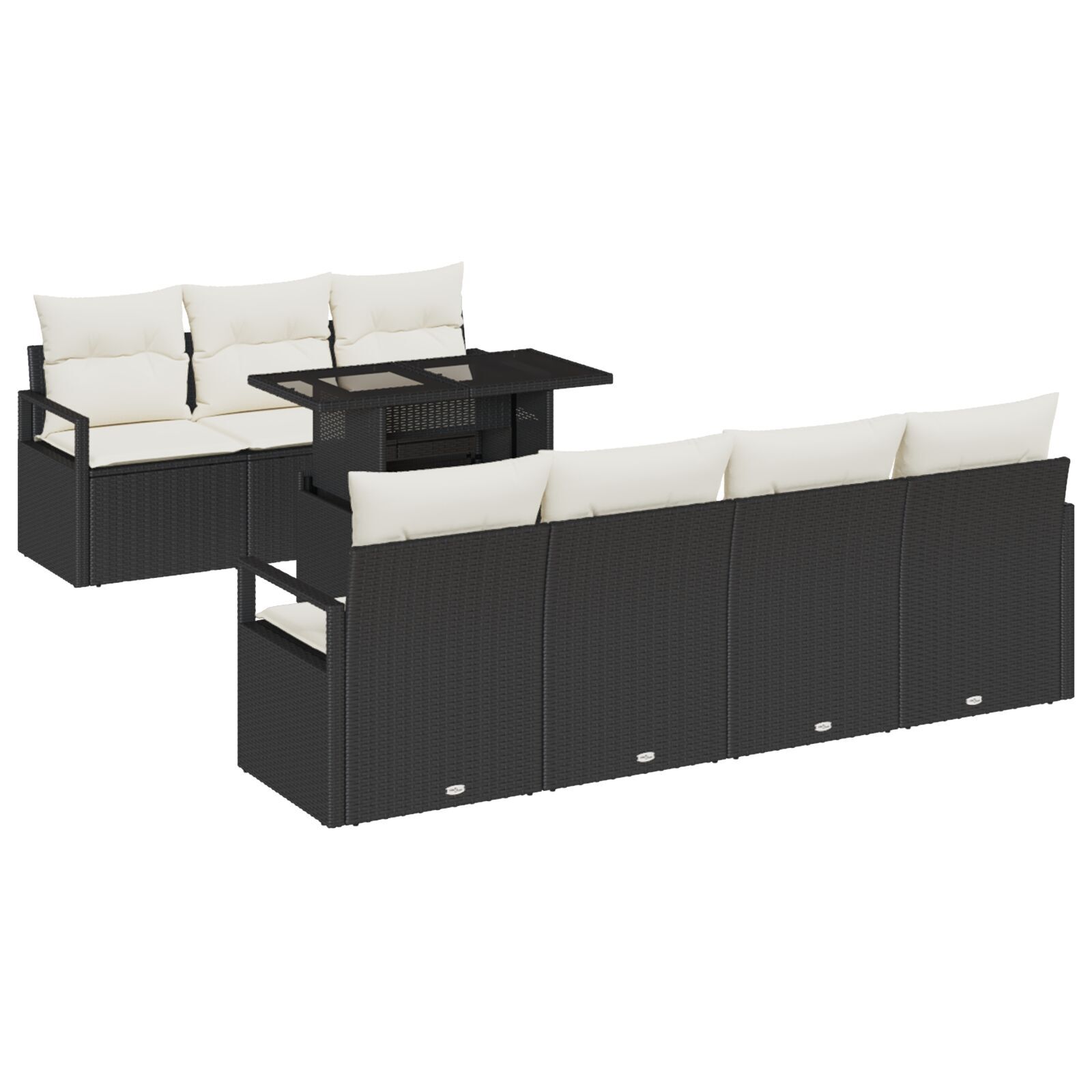 Set de canapele de grădină cu 8 piese și perne Negru Ratan Poli, Canapea de grădină cu 2 locuri și perne Negru Ratan Poli GartenMobel Dekor