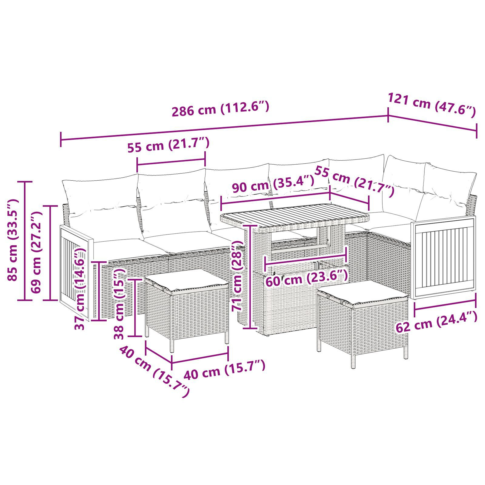 - Livrarea conține: Set de canapele, Perne, Masă