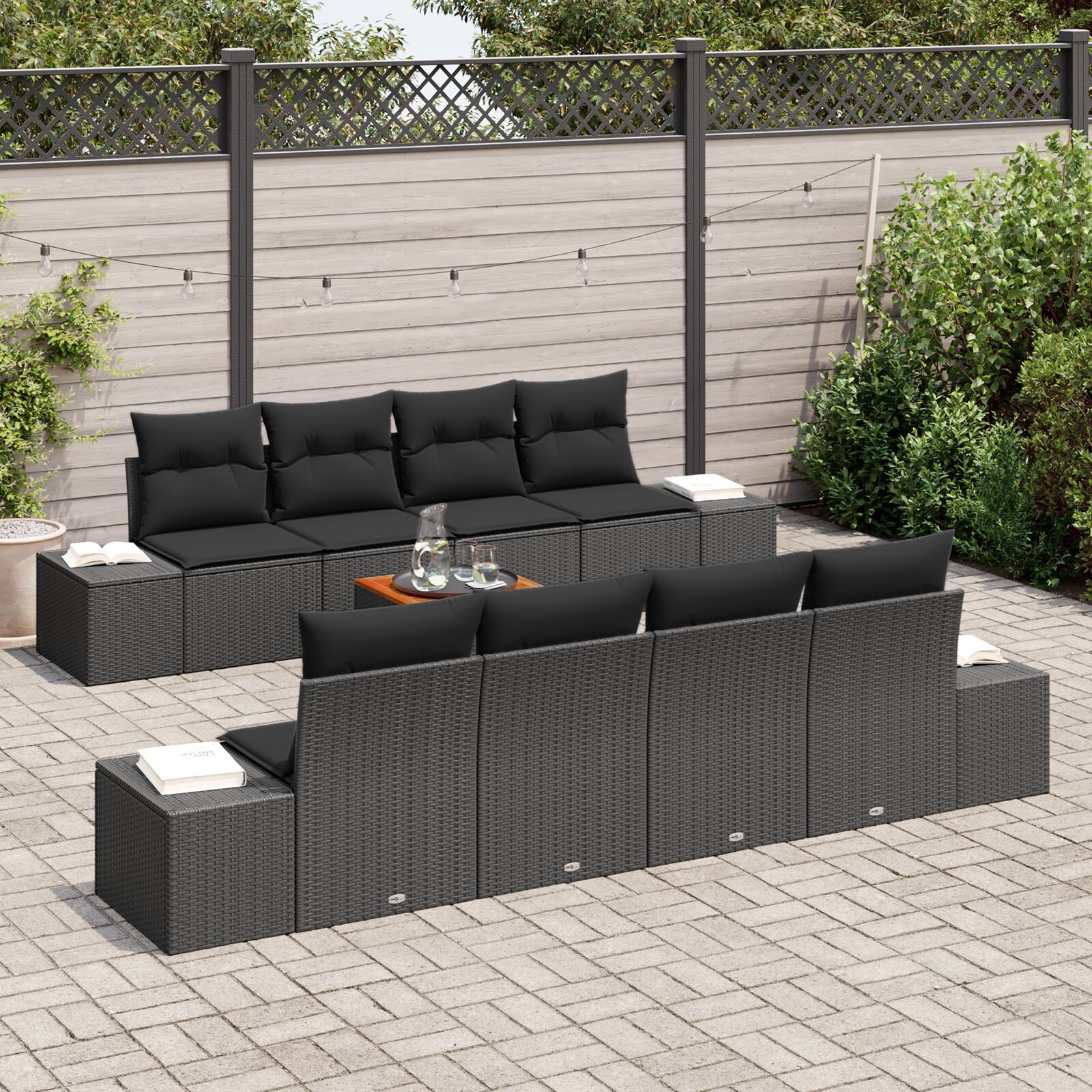 Set de canapele de grădină cu 9 piese și perne negre din ratan polimer acacia GartenMobel Dekor