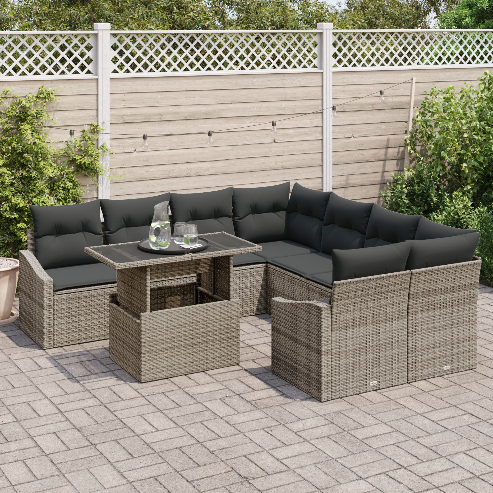 Set de canapele de grădină de 9 piese cu perne gri din ratan poli GartenMobel Dekor