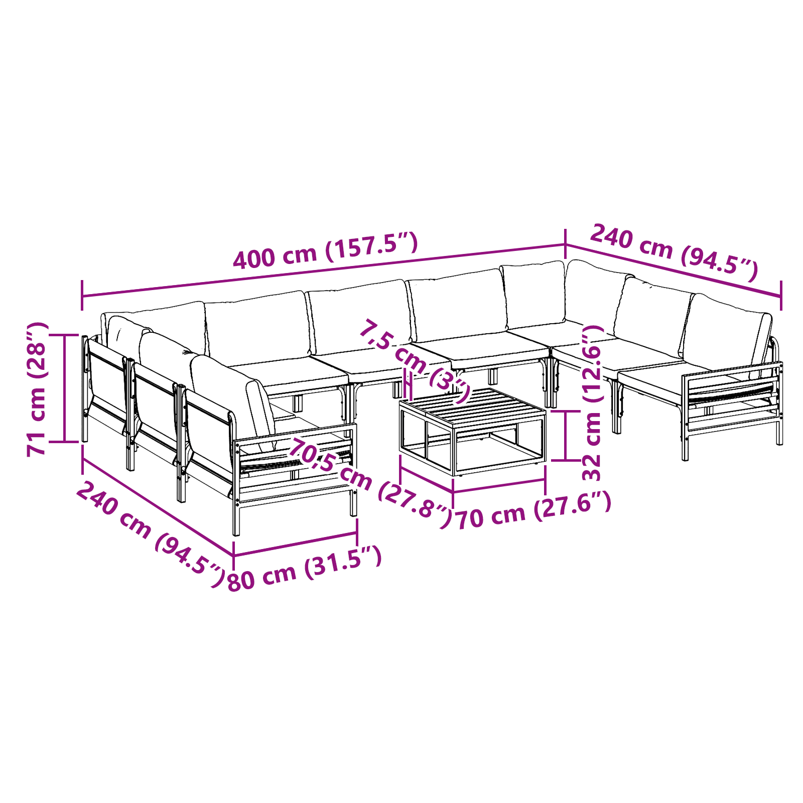 Descriere Set canapele grădină 10 pcs Antracit