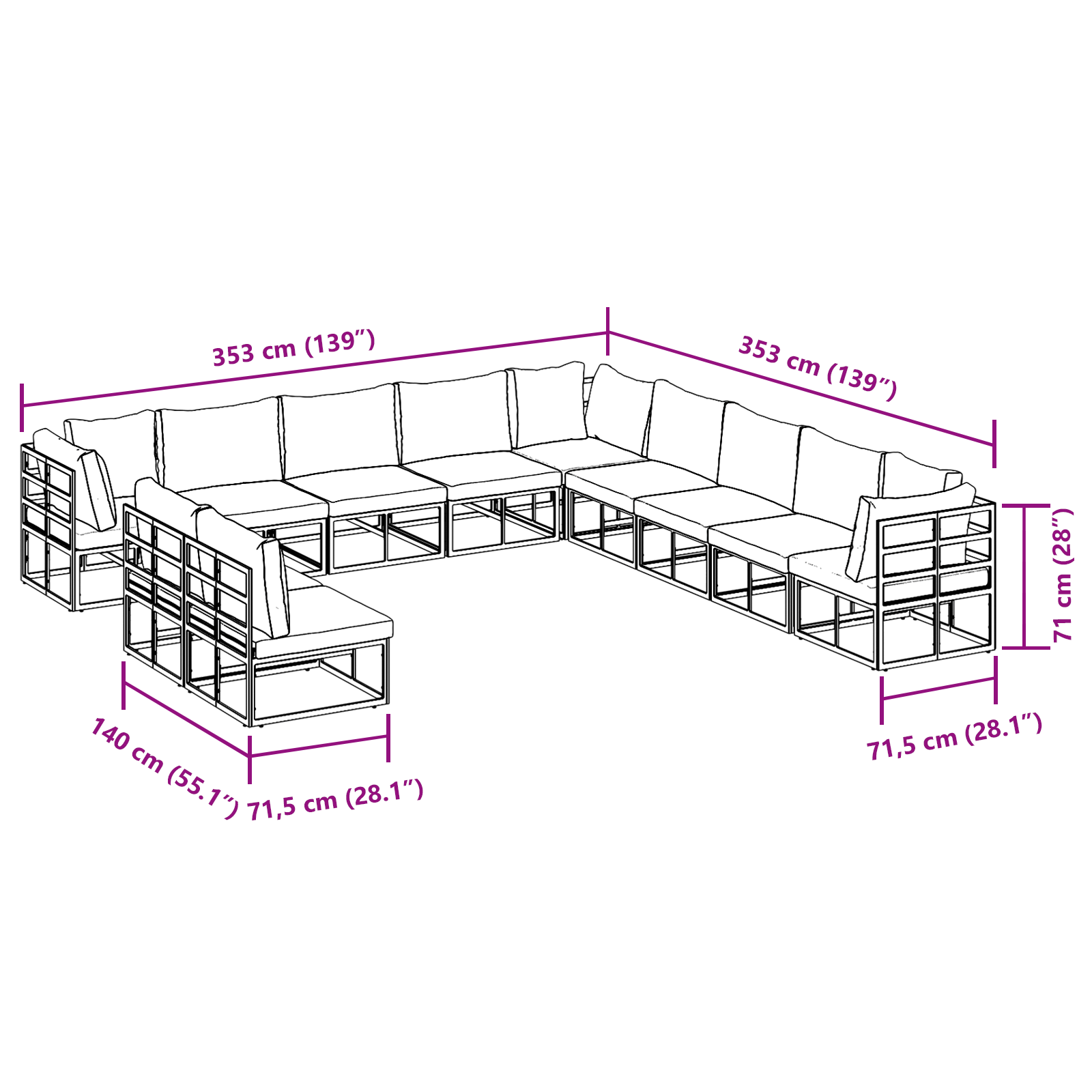 Setul ăsta de mobilier modular pentru exterior e o adăugare faină în orice grădină sau terasă. Cu linii clare și design simplu, arată modern și primitor. E făcut pentru aer liber, punând accent pe confort și utilitate, așa că te poți bucura de întâlniri la soare sau seri liniștite sub cer înstelat. Materialele din aluminiu și poliester îl fac elegant și durabil, perfect pentru brunchuri casuale sau petreceri chic. Setul ăsta te îndeamnă pe tine și pe invitați să vă relaxați și să vă destindeți.