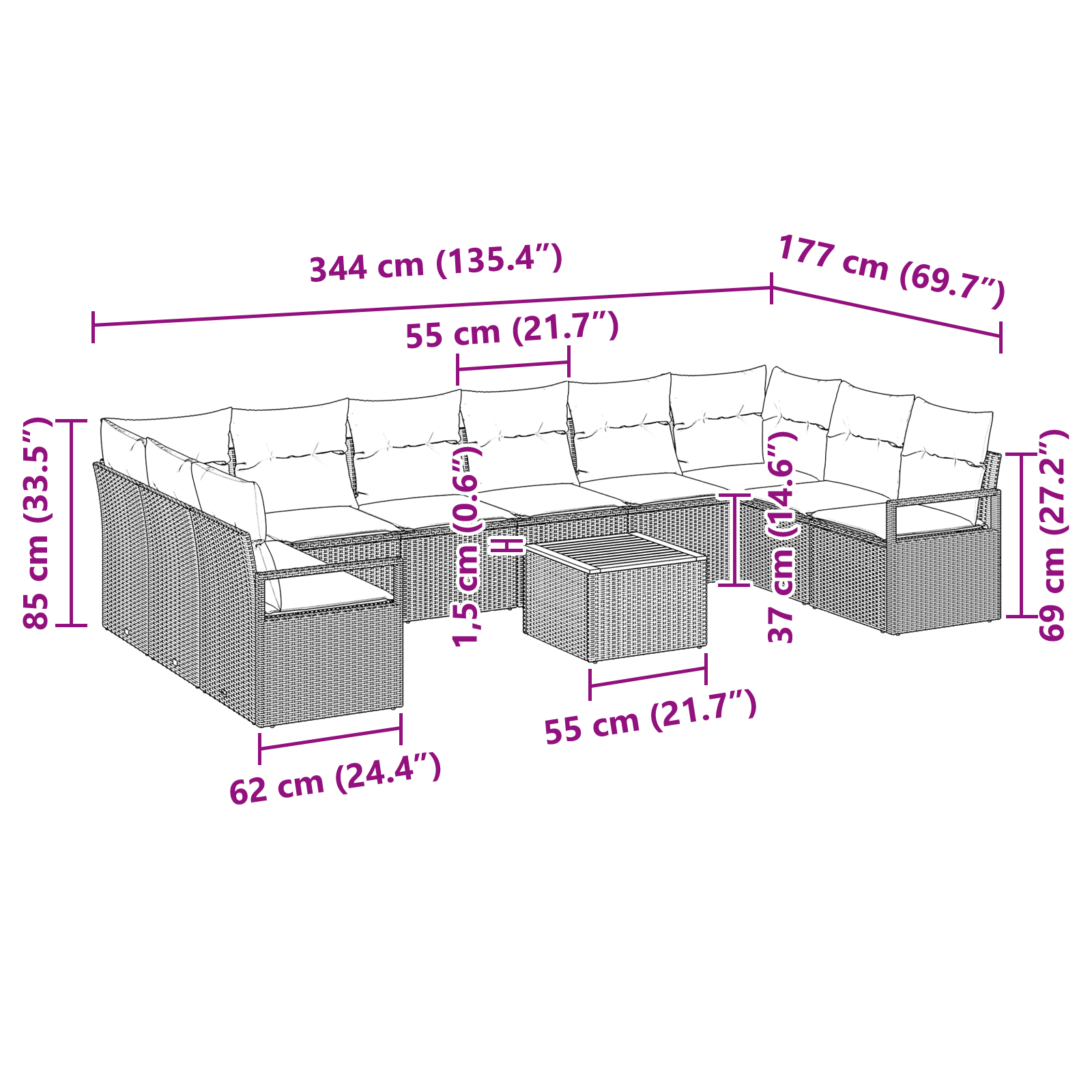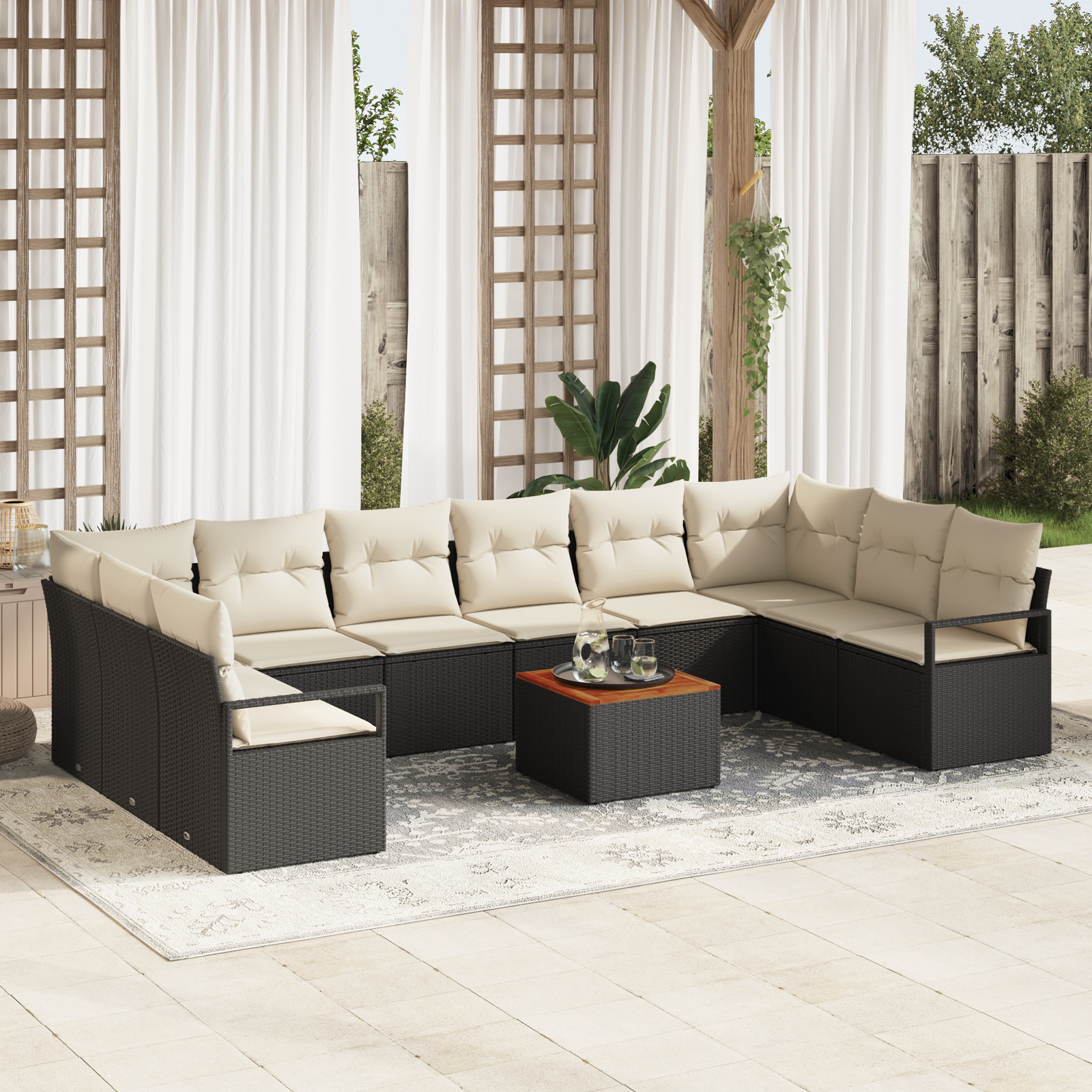 Set de canapele pentru grădină 11 piese cu perne Negru Ratan Poliester Acacia, Canapea de grădină 2 locuri cu perne Negru Ratan Poliester GartenMobel Dekor