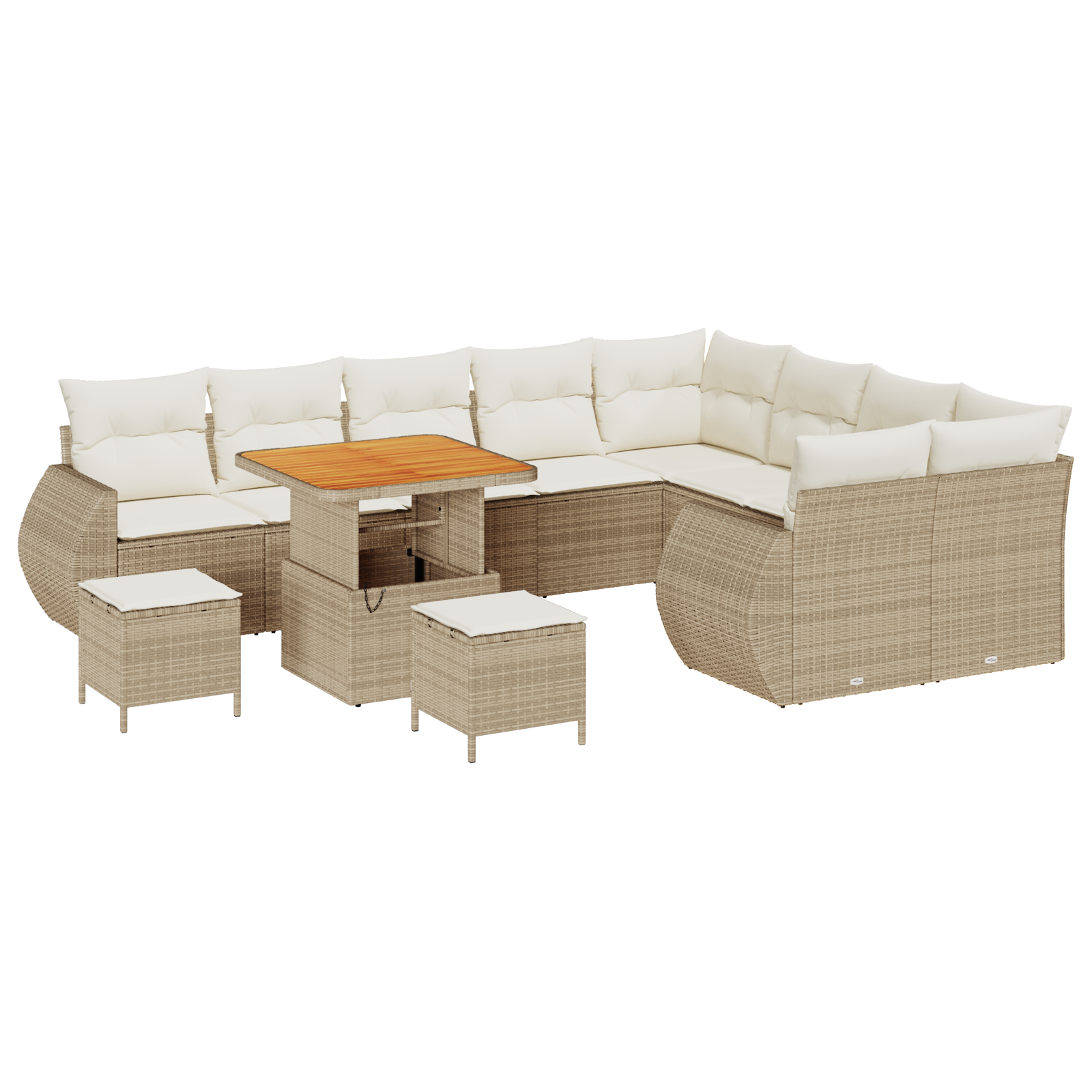 Set de canapele pentru grădină 12 piese cu perne Bej Poliratan Acacia, Set de dining pentru grădină 3 piese cu perne Bej Poliratan Acacia GartenMobel Dekor