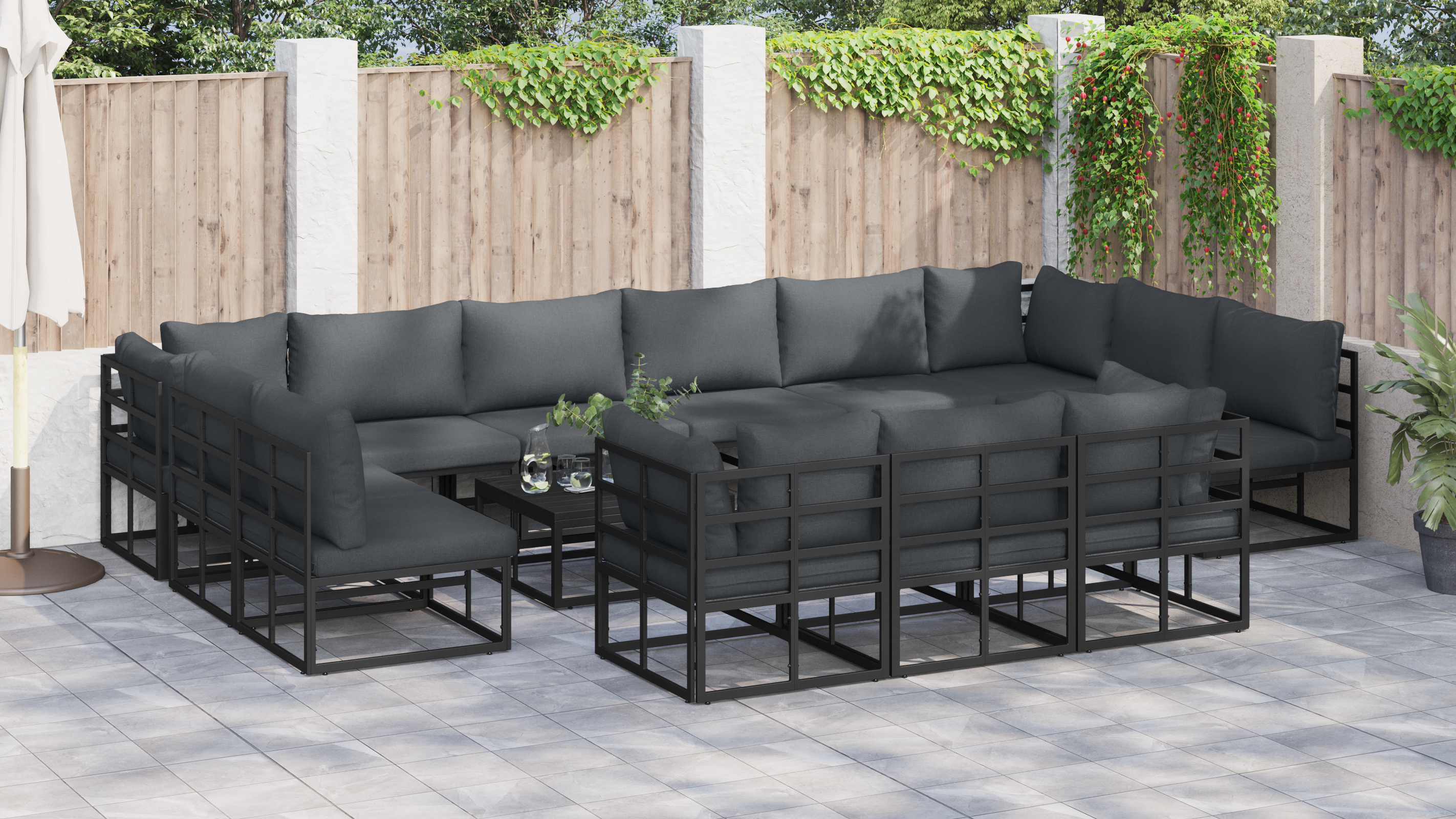 Ia o privire la setul ăsta modular de exterior care aduce împreună stilul și practicitatea pentru grădina sau terasa ta. E conceput să fie simplu, cu linii clare, deci e o alegere super pentru oricine vrea un loc chic și practic în aer liber. Îl poți aranja în multe feluri diferite, fie că ai o întâlnire, te relaxezi sau vrei să transformi spațiul exterior într-un lounge confortabil. Făcut din materiale de calitate, chestia asta nu doar că arată bine, dar e și confortabil și durabil pentru tot ce faci afară.